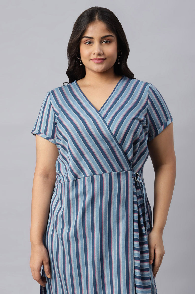 Blue Stripe Cotton Plus Size kurta with Side Buckle