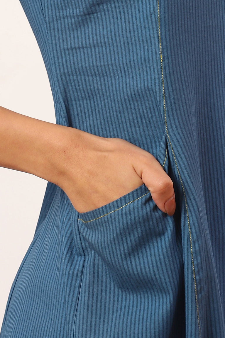 Blue and White Striped Crepe Kurta with Circular Hemline