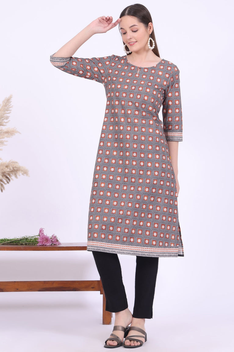 This Playful straight kurta in colourful print is an effortless go to, for everyday outing. It's comfortable cut and added pocket makes it an absolute choice.