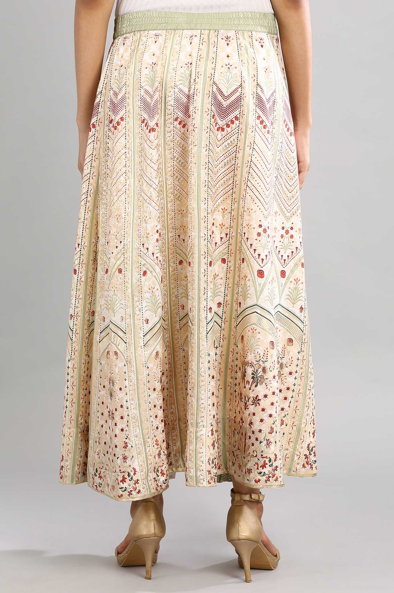 Amp Up Your Fusion Styling With This Trendy Beige Printed Flared Skirt. The Skirt Has Elasticated And Mid-Rise Waistband.