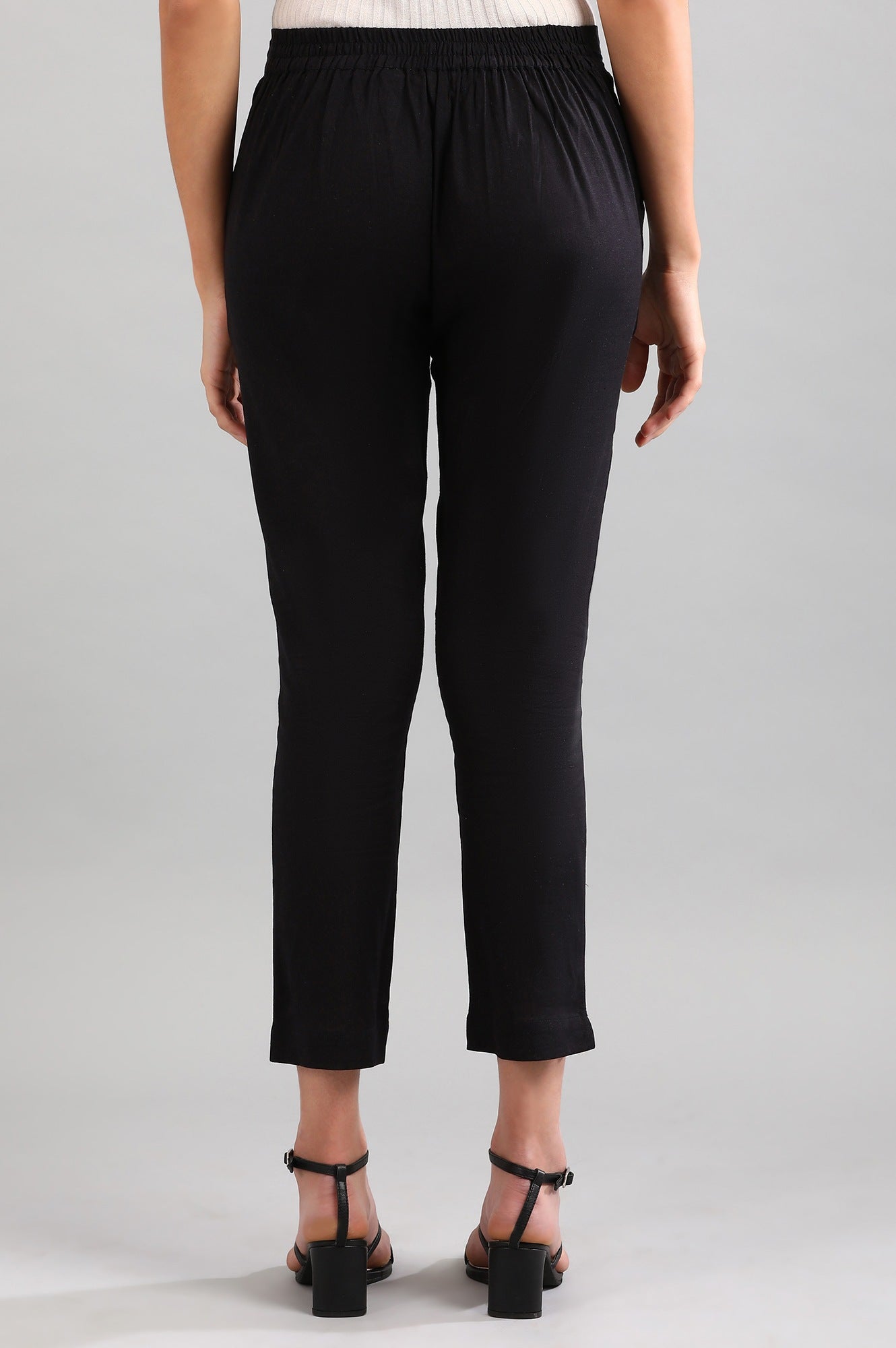 Black solid regular fit trousers with roll-up hem with pocket and elasticated back.