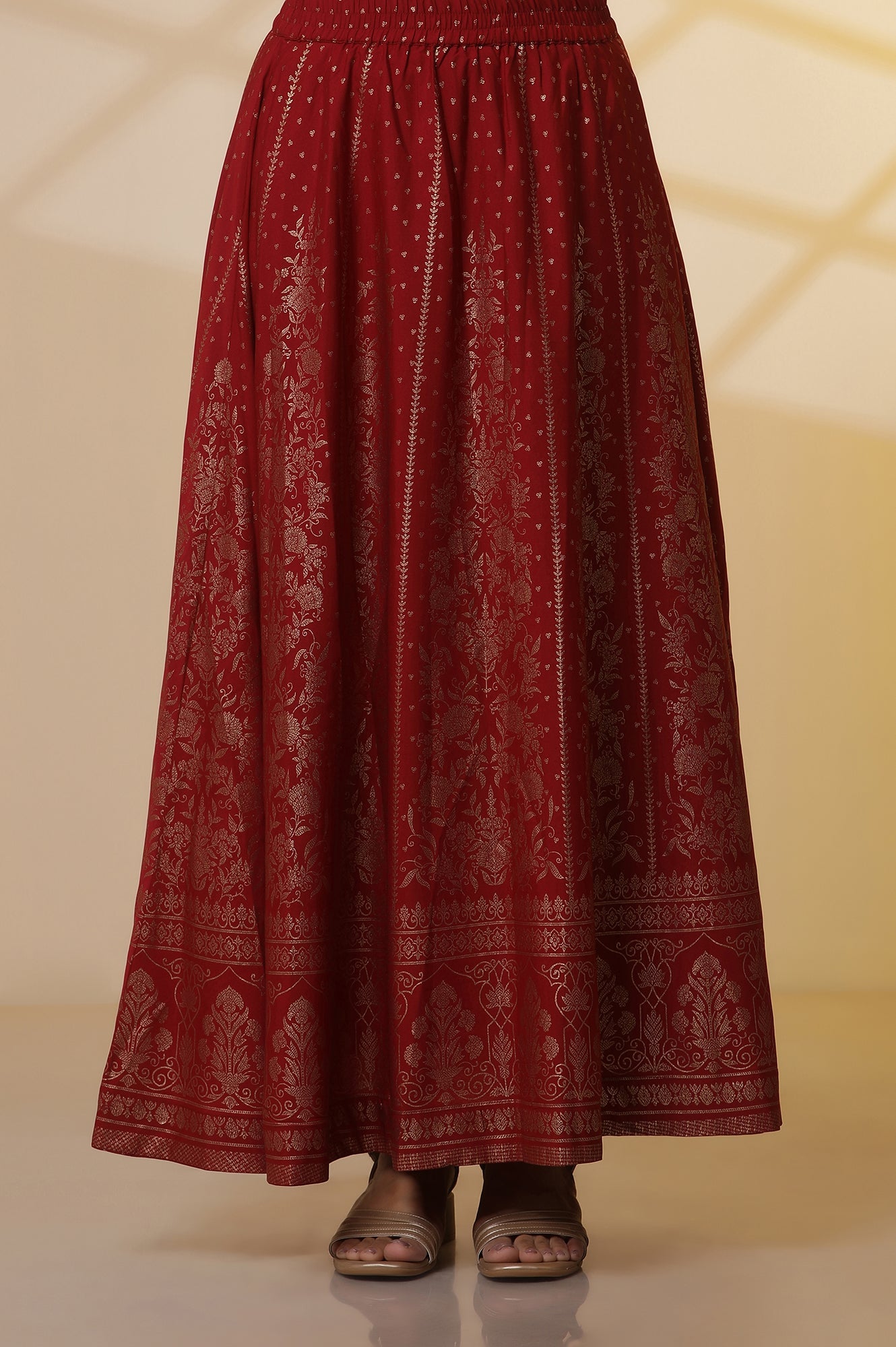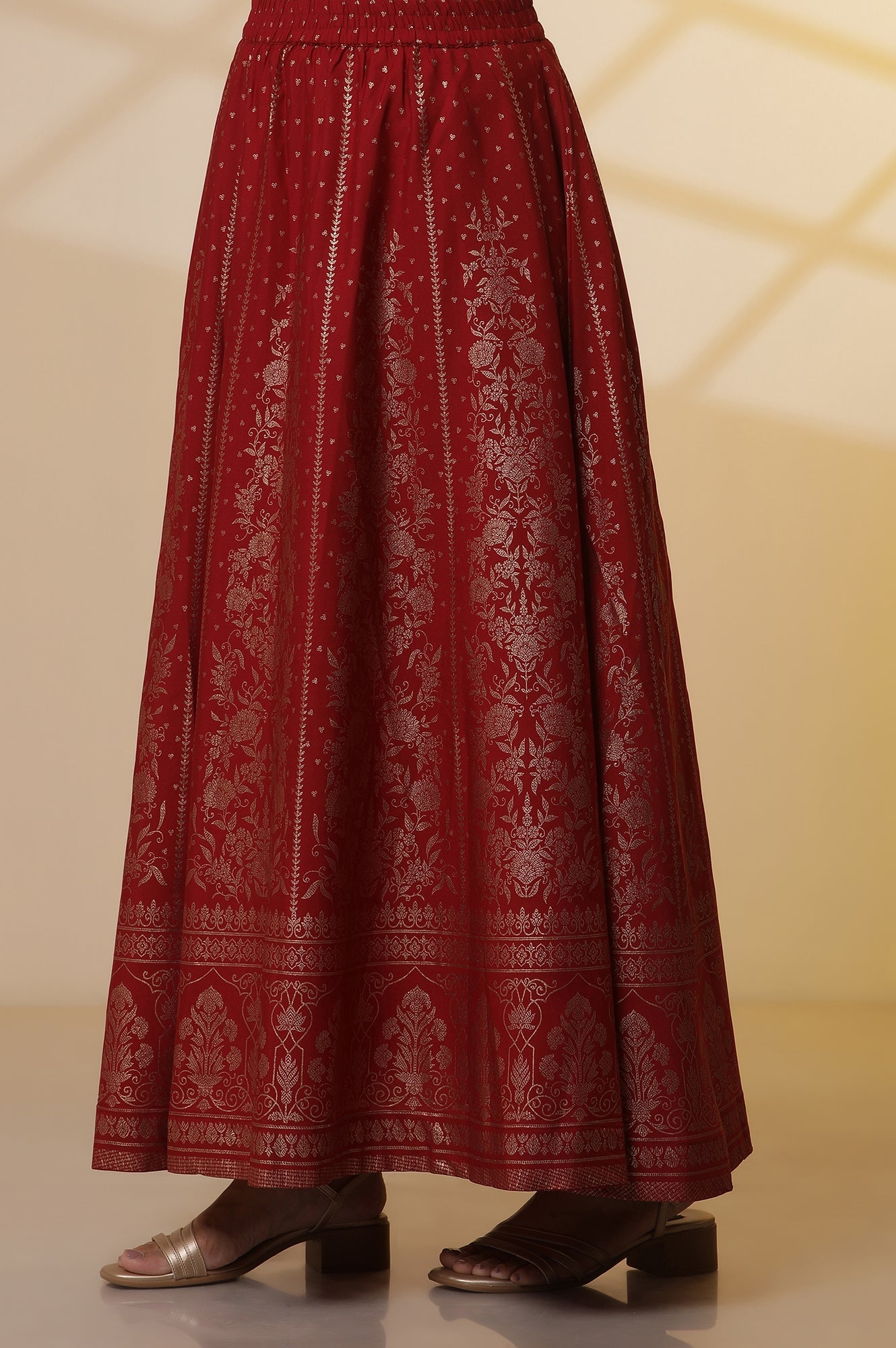 Black Zari Embroidered Straight Kurta, Red Printed Skirt and Dupatta Set