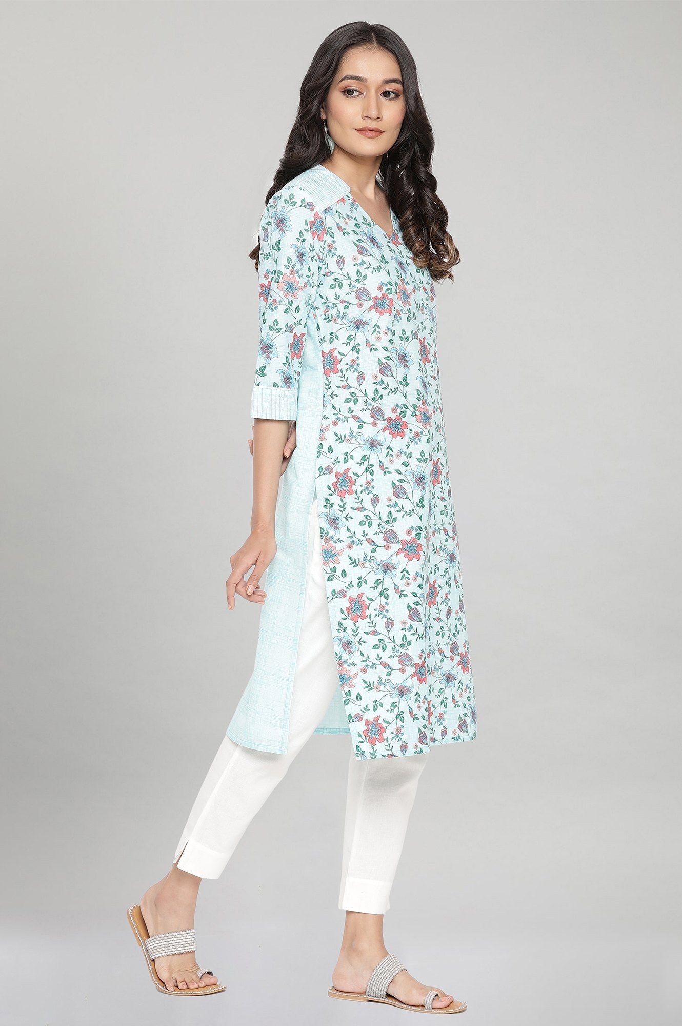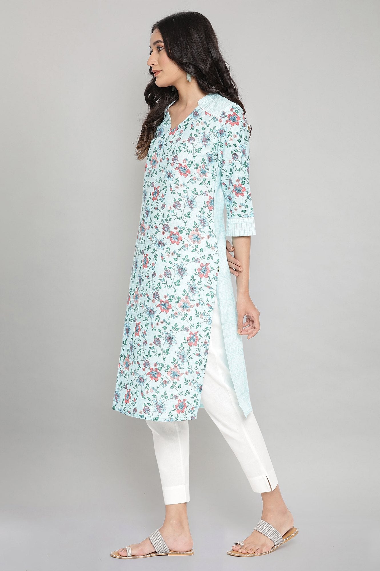 Simple yet chic! This floral print kurta in round neck with V kurta has staright silhouette, side slits and three-quarter sleeves. Amph up your casual wardrobe with this pretty and comfortable kurta. You can style it for a casual day out, at office or while traveling.