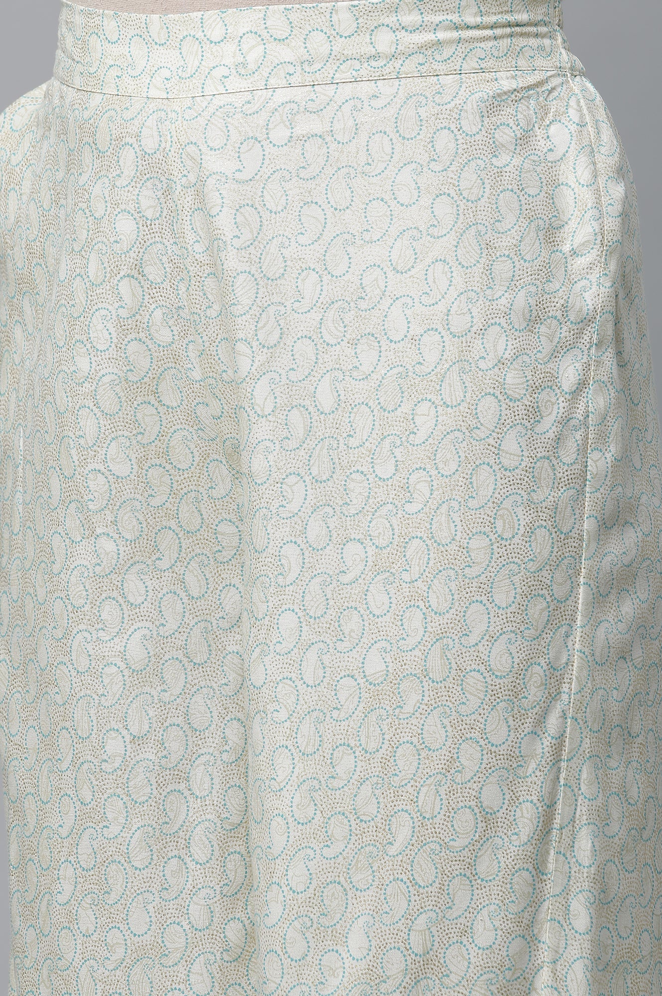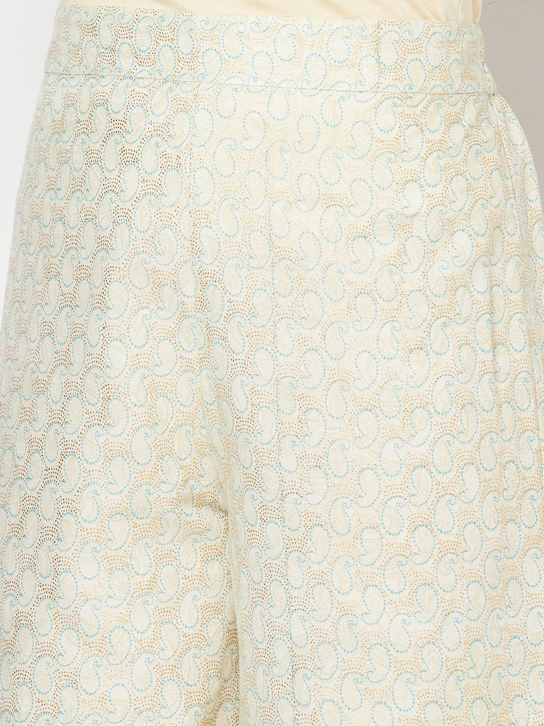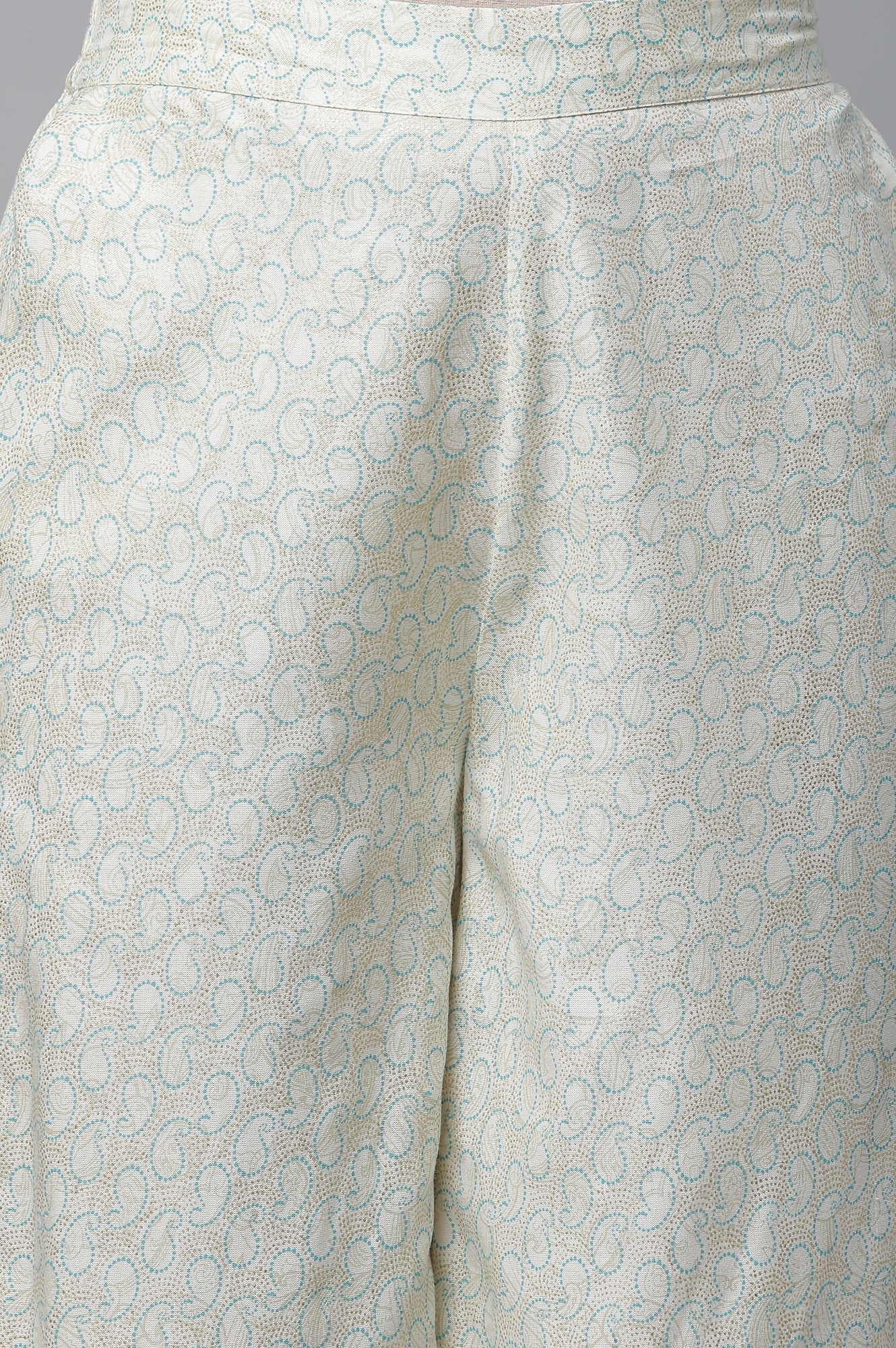 Get styled for a stunning festive look with this pretty Aurelia set. The set has blue festive printed kurta with embellishe neckline. It is paired with white printed palazzo pants.