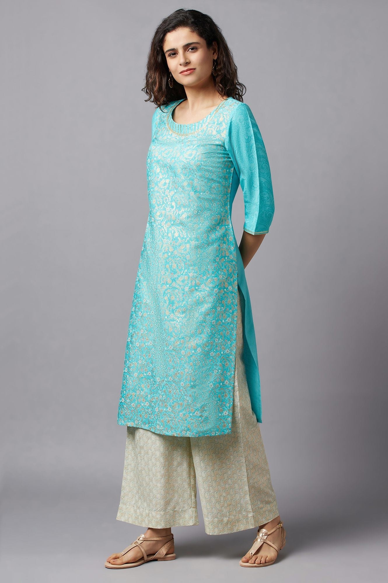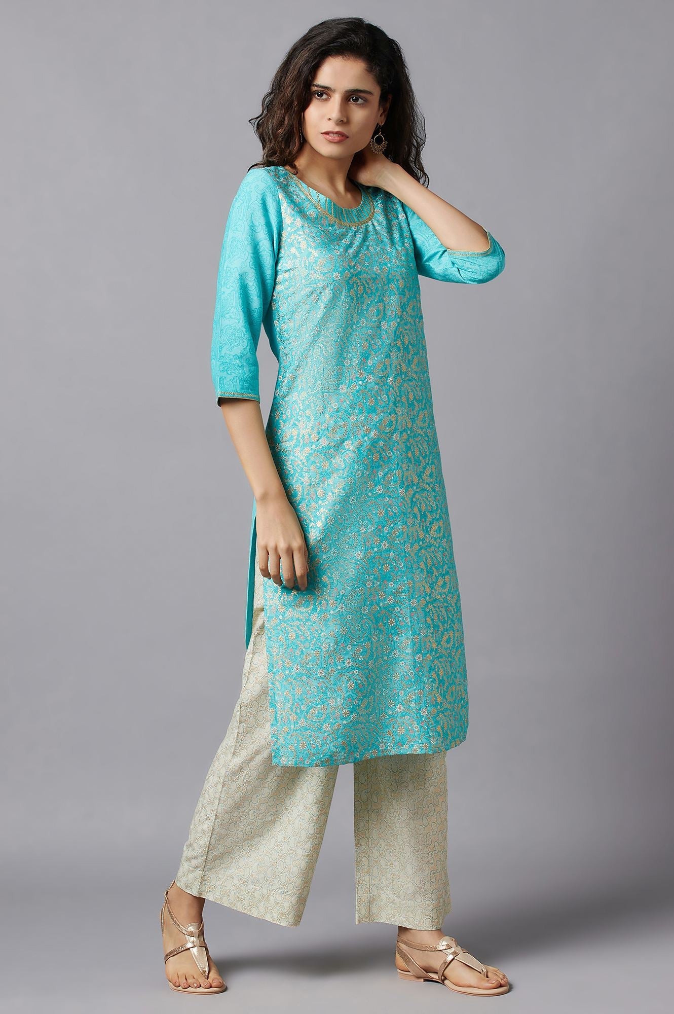 For the modern ethnic look, this kurta is a perfect pick. Crafted in premium fabric, this kurta flatters straight silhouette and foil floral print.