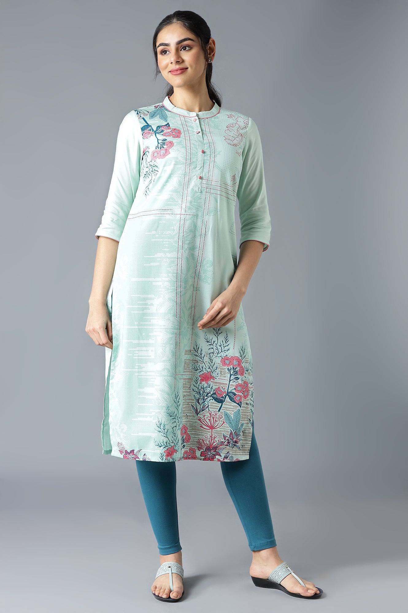 Blue coloured slim fit ankle length solid tights with elasticated waistband.