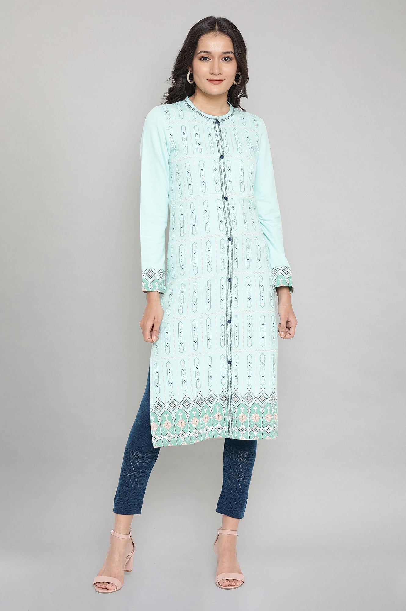Stay comfortable and look stylish in these winter tights. Corsair blue interlock solid tights in ankle length and mid-rise.