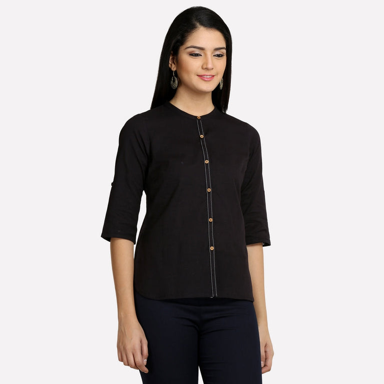 A fresh, monochromatic floral kantha printed straight kurta with smart mandrin neckline detail with placket highlighted contrast piping. This gives you a space to choose from variety of bottoms in contrast.