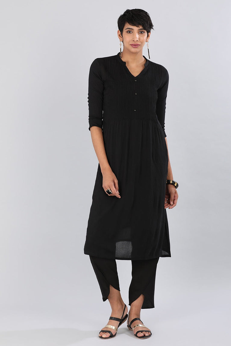 Black Mandarin Neck Solid kurta