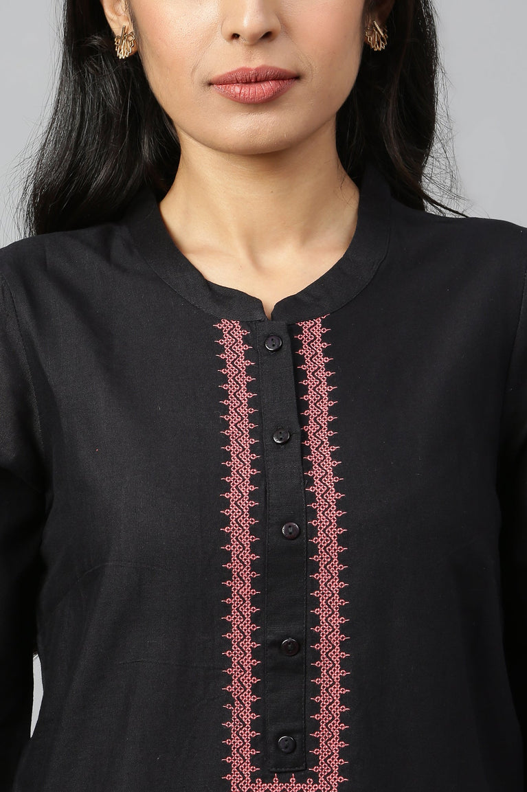 Black Thread Embroidery Cotton Blend Straight Kurta and Palazzo Set