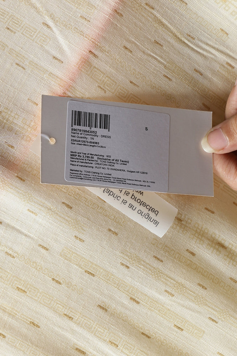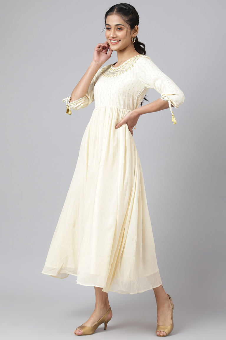 Cream Chiffon Dress with Gold Embroidery