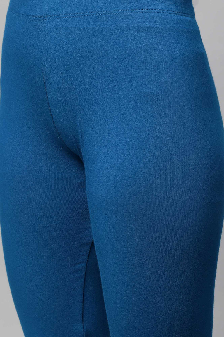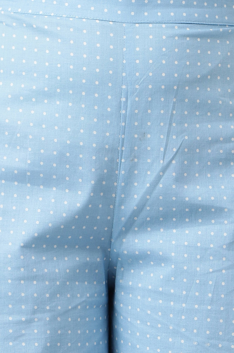 Blue Pure Cotton Flared Kurti and Jegging Set