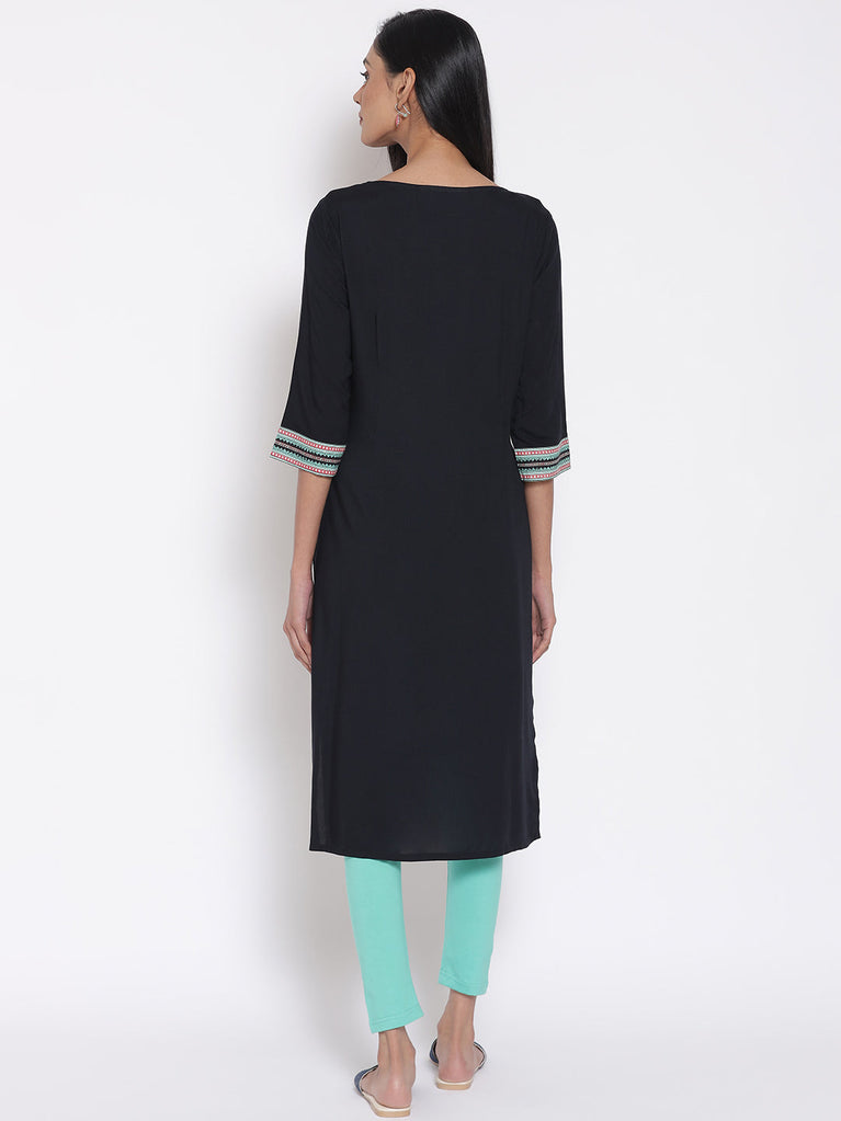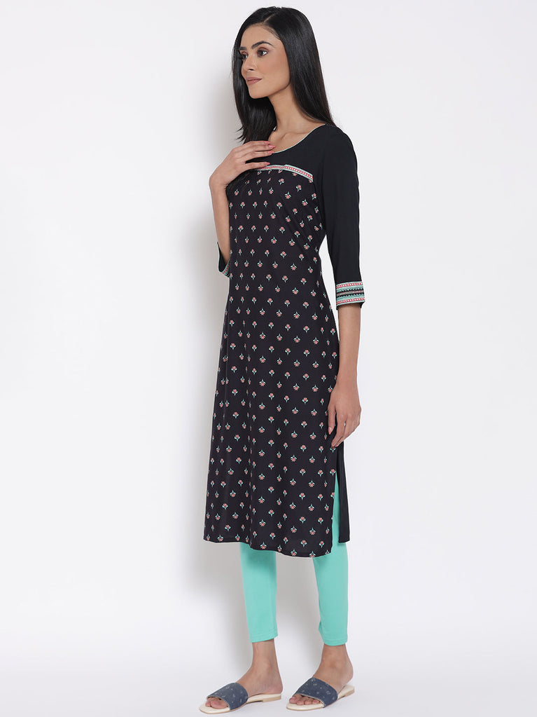Black Printed LIVA Kurta & Tights