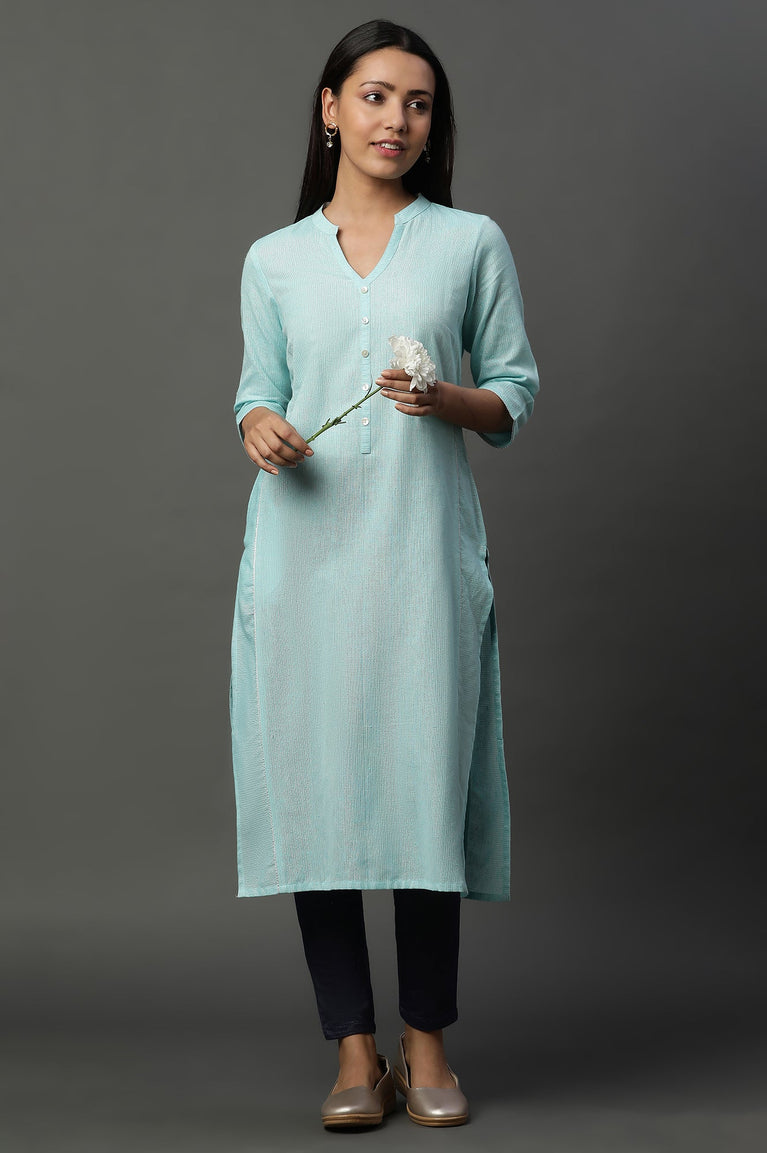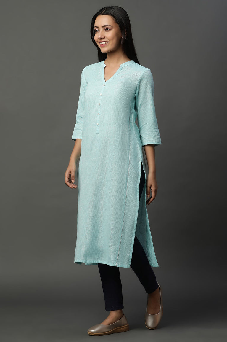 Blue Striped Yarn-Dyed Straight Kurta