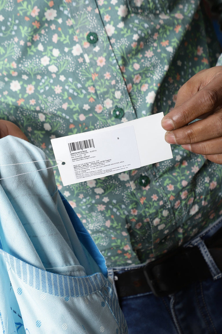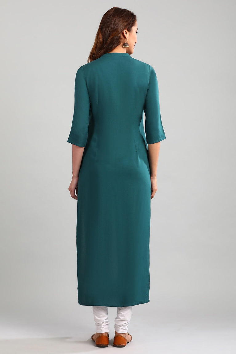 Blue band collar straight Liva kurta yarn-dyed Liva kurta with placket detail, cuff sleeves and button.
