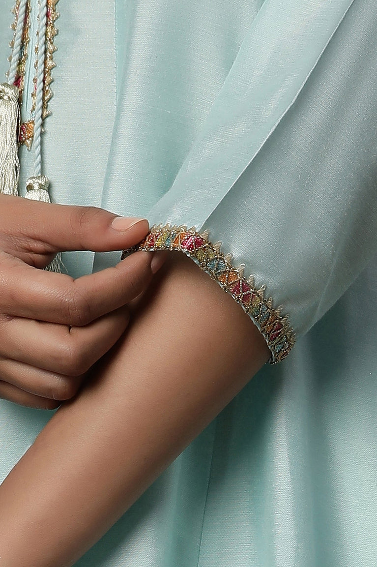 Blue Flared Anarkali Kurta, Tights and Jacquard Dupatta