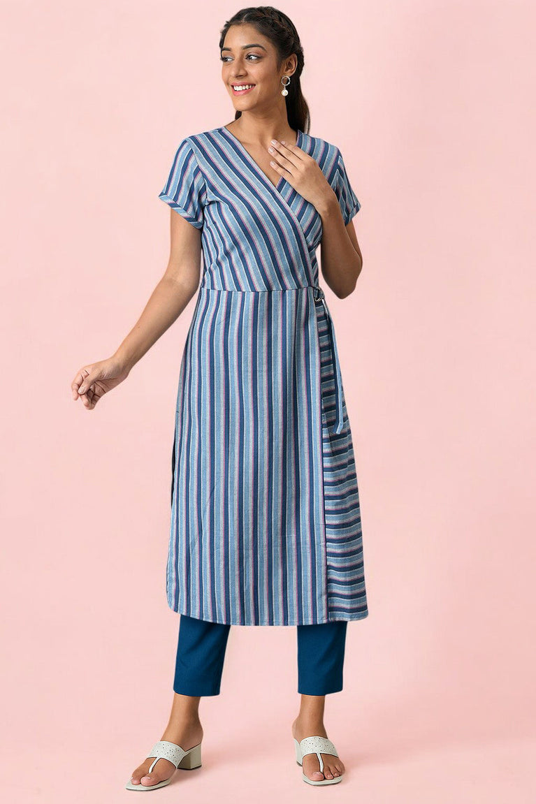 For Your Comfy And Stylish Summer Look, We Have Got You This Pretty And Elegant Blue Geometric Print kurta By Aurelia. The kurta Has Band Collar With Button Placket.