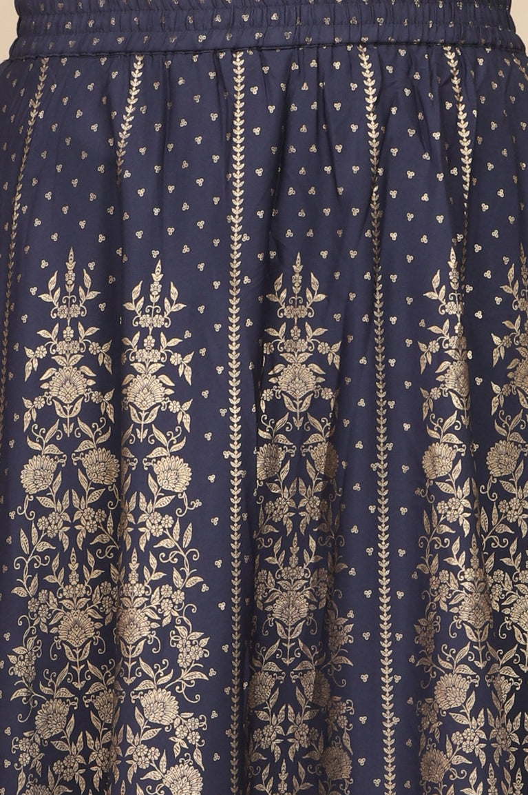 Blue Foil Printed Straight Kurta and Skirt Set with Dupatta