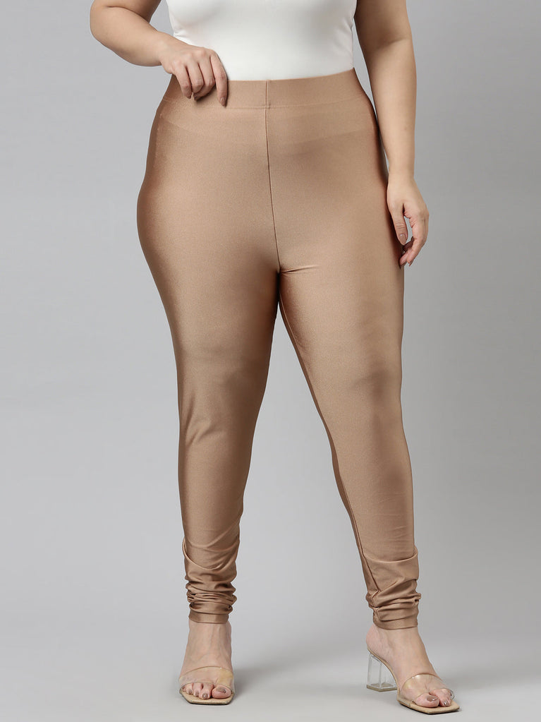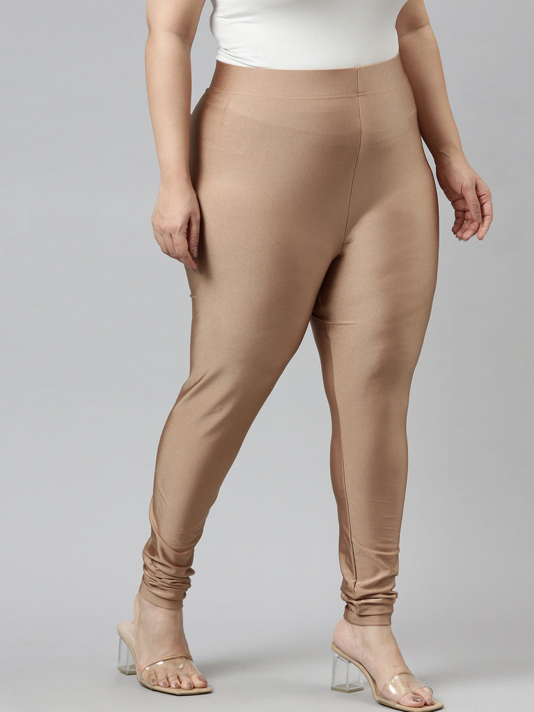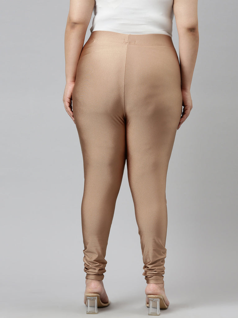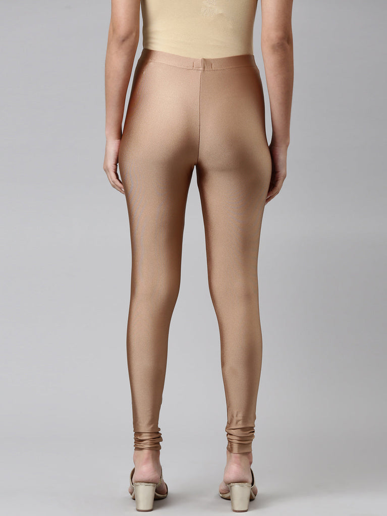 Go chic with a pair of Antique Gold Solid Shimmer Churidar Leggings. Made from high quality Nylon & Elastane, it has a elasticised waistband & gathers at the hemline.