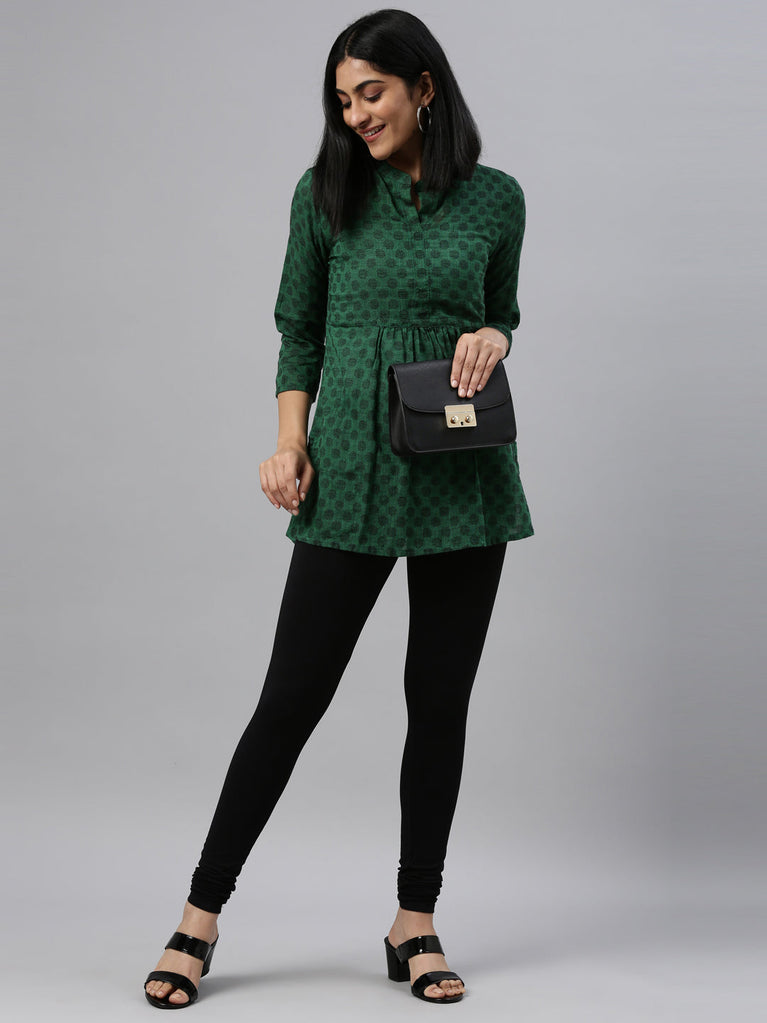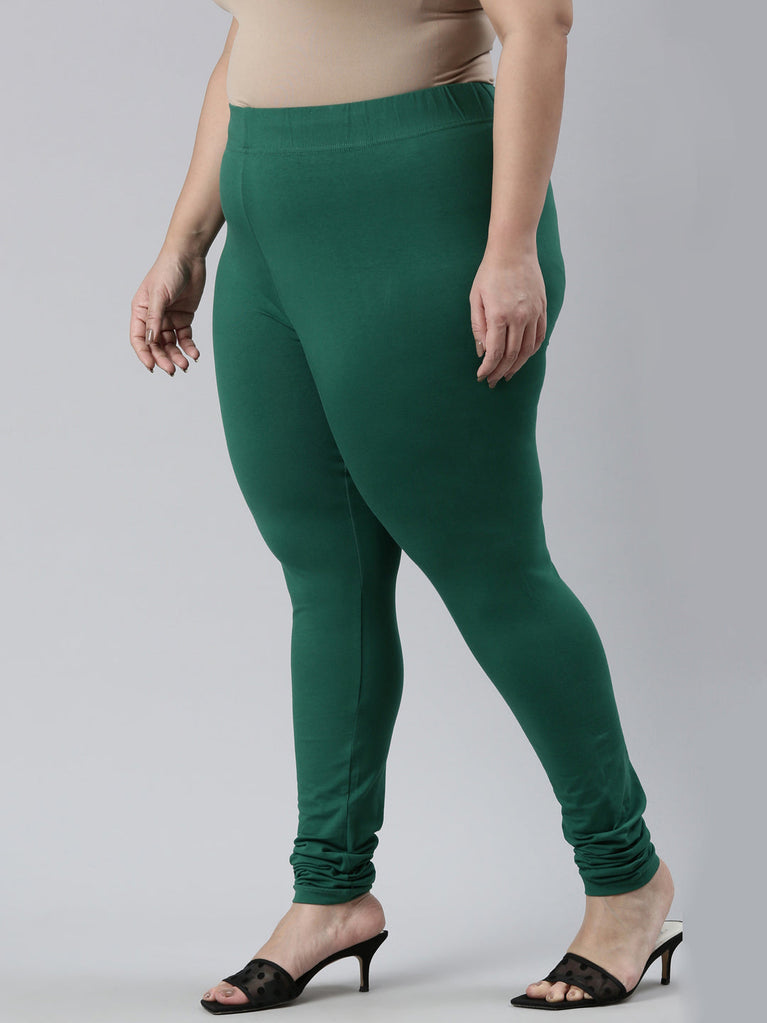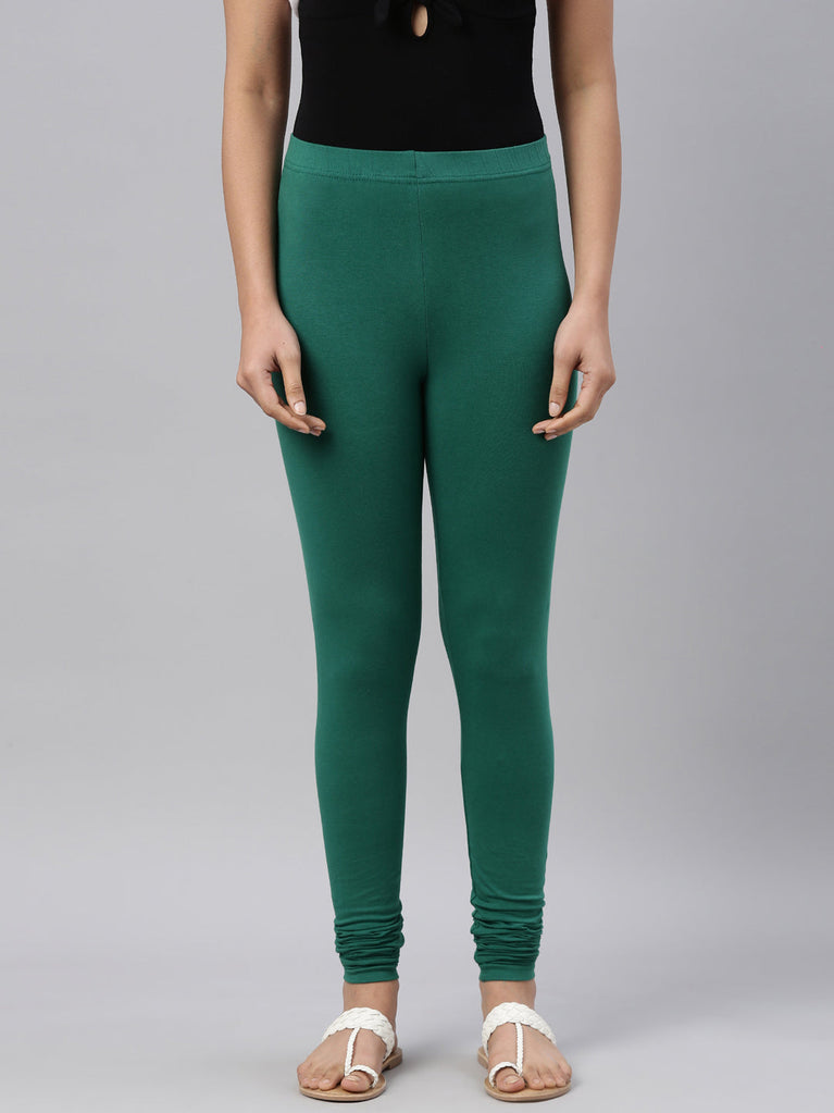 Go chic with a pair of Bottle Green Solid Churidar Leggings. Made from high quality cotton, it has a elasticised waistband & gathers at the hemline.