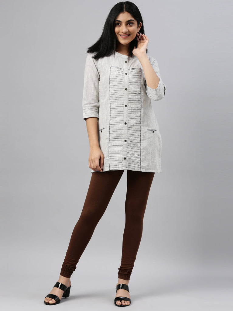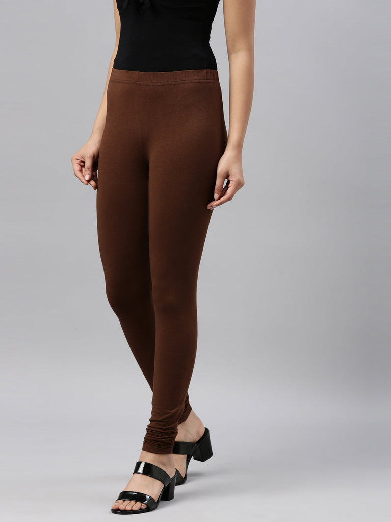 Go chic with a pair of Dark Brown Solid Churidar Leggings. Made from high quality cotton, it has a elasticised waistband & gathers at the hemline.