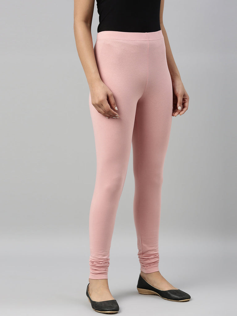Go chic with a pair of Baby Pink Solid Churidar Leggings. Made from high quality cotton, it has a elasticised waistband & gathers at the hemline.