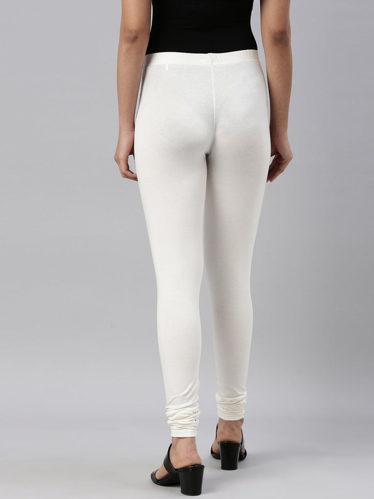 Go chic with a pair of Cream Solid Churidar Leggings. Made from high quality cotton, it has a elasticised waistband & gathers at the hemline.