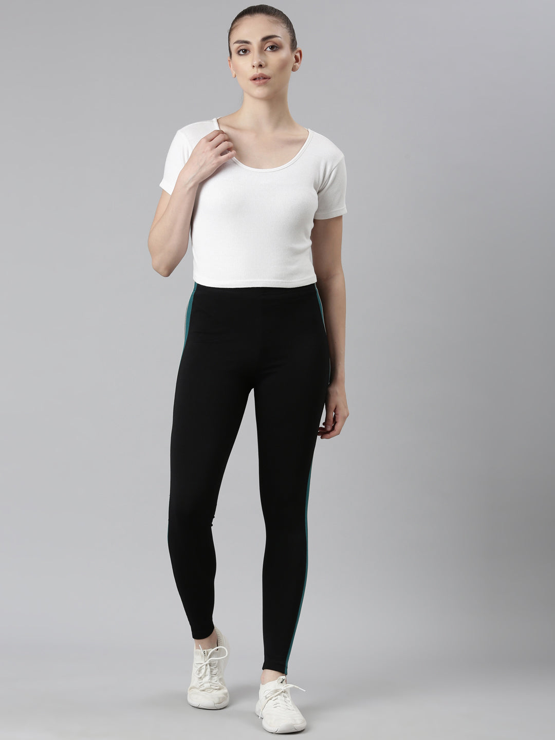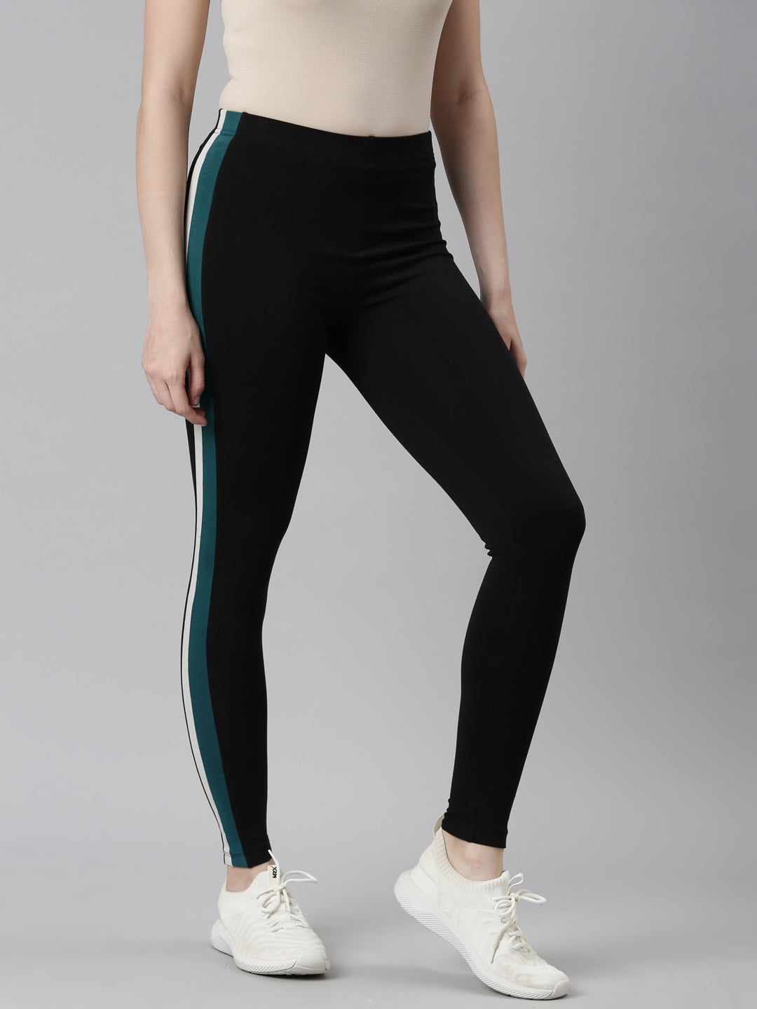 Bringing your A-game to any fitness regime with our comfortable Black Solid Side Stripe Active Leggings. Made from cotton stretch fabric, it has a elasticised waistband & a contrast side striped panel for a sporty look.