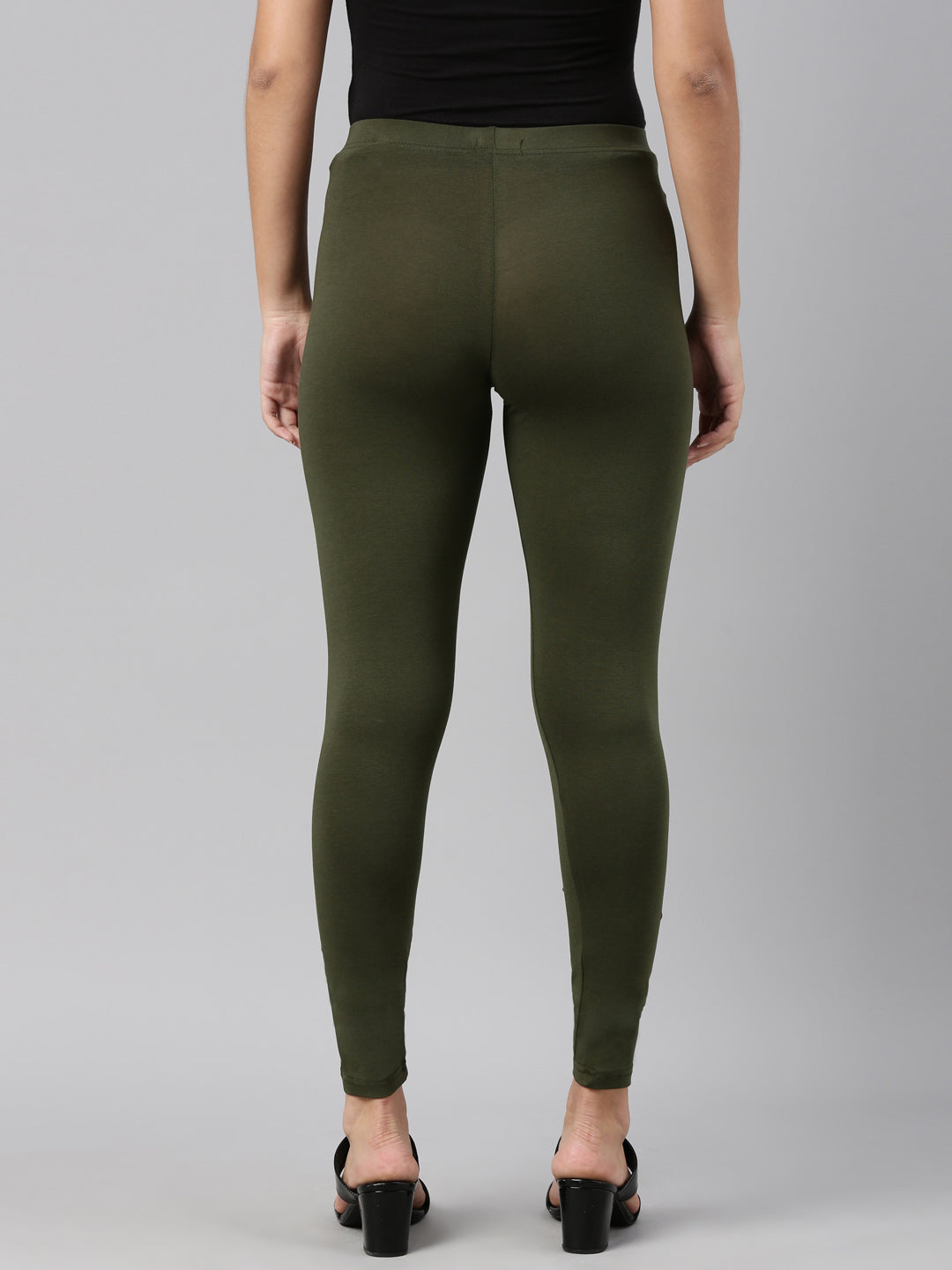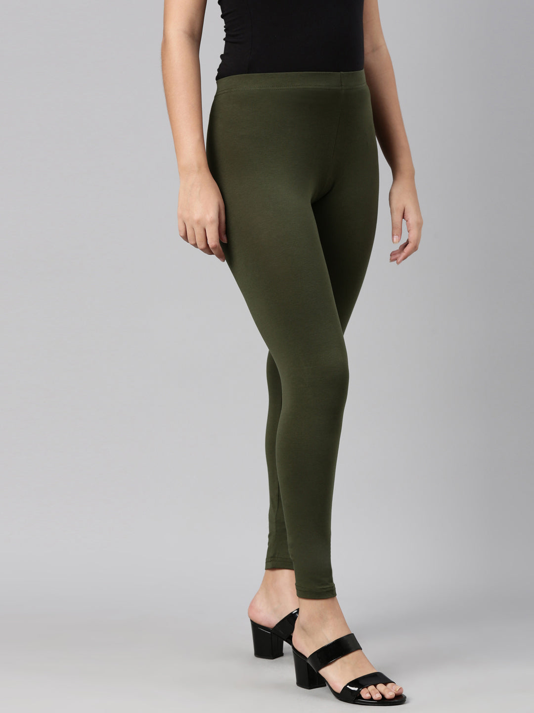 Dark Olive Cotton Stretch Ankle Length Leggings