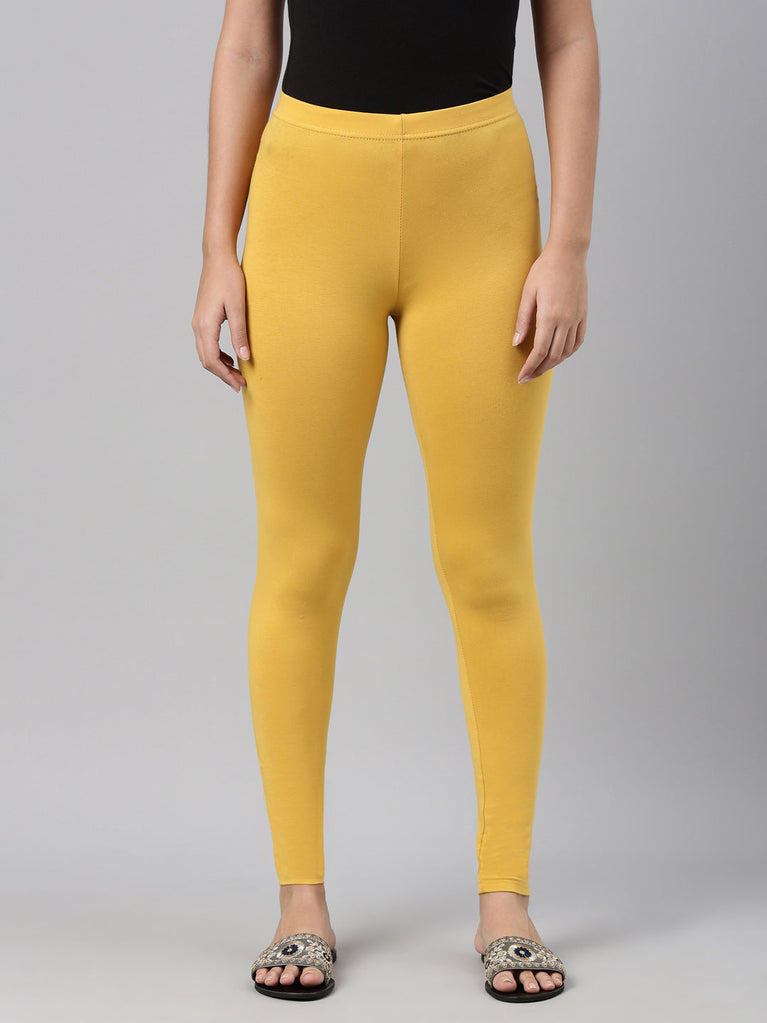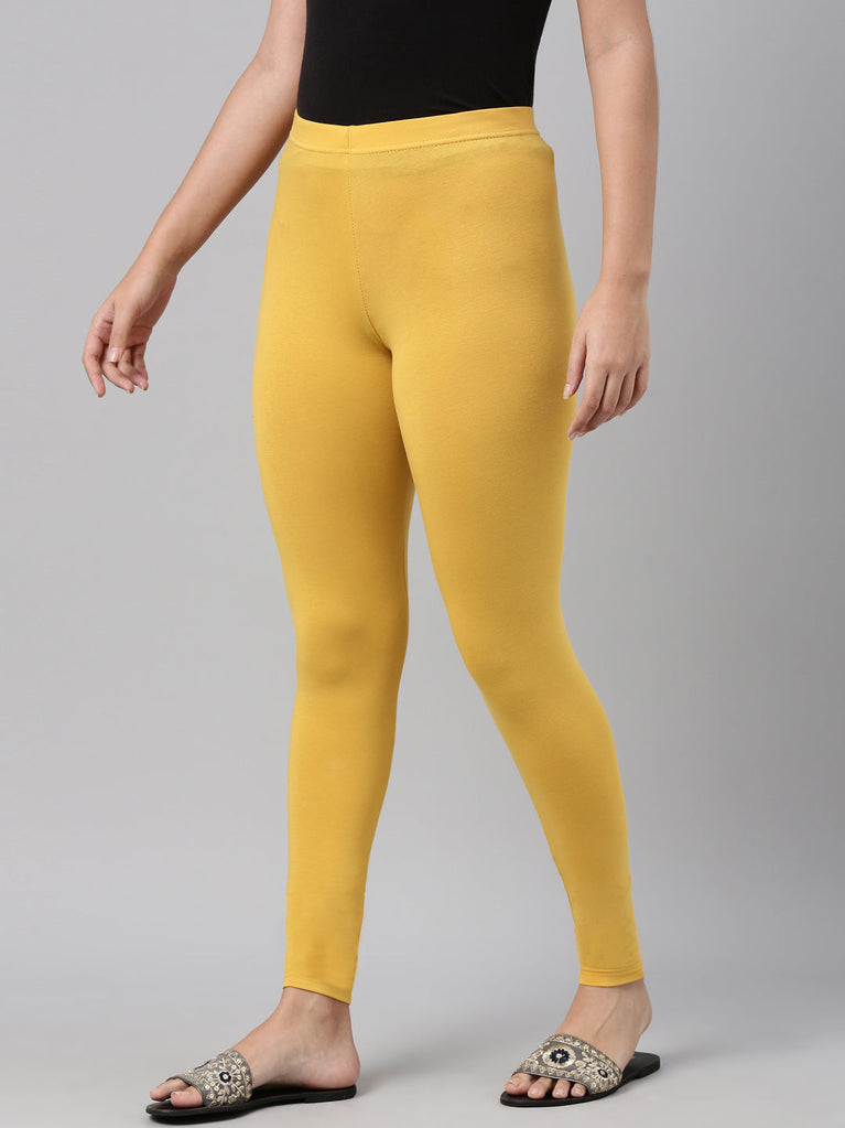 Golden Yellow Cotton Stretch Ankle Length Leggings