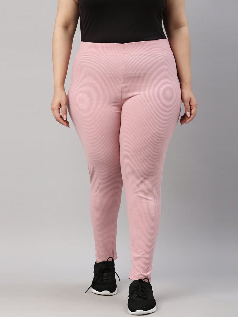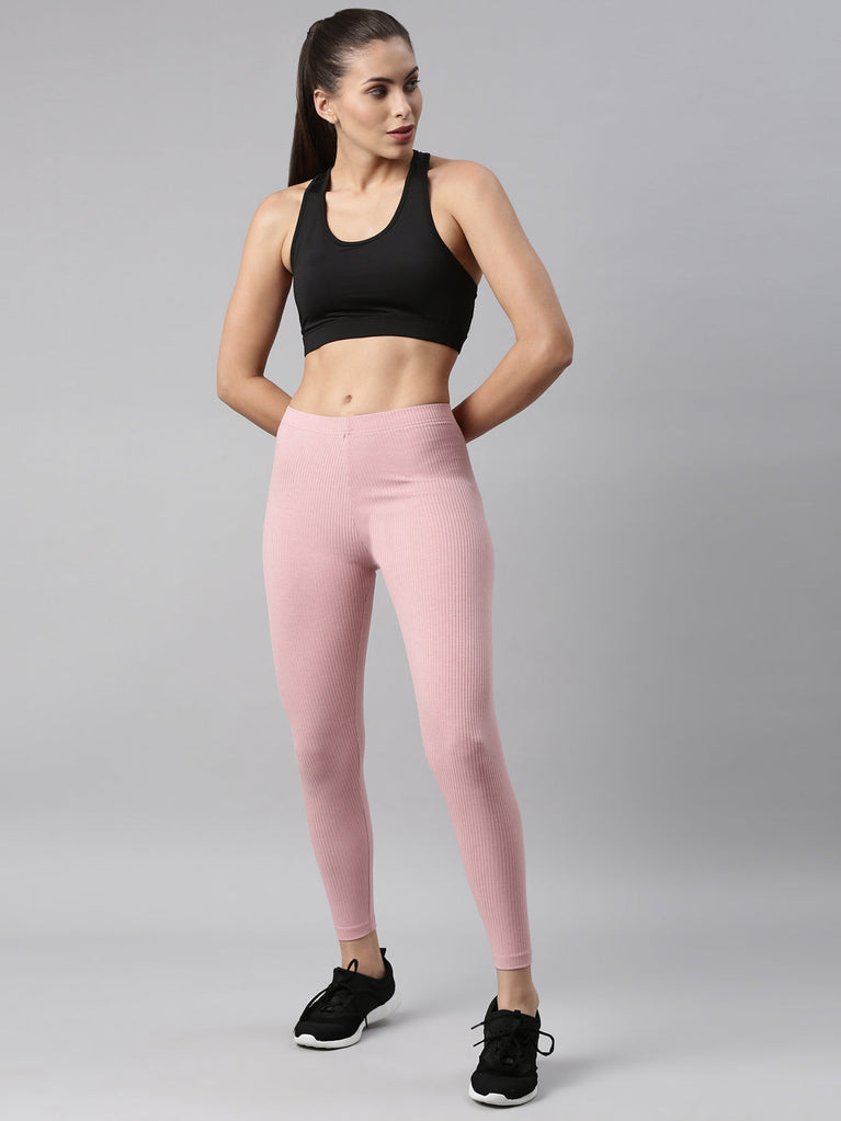 Go the ethnic way with our Solid Light Pink Ribbed Leggings. Made from Rayon & Spandex it has a elasticised waistband, slim fit & is of ankle length