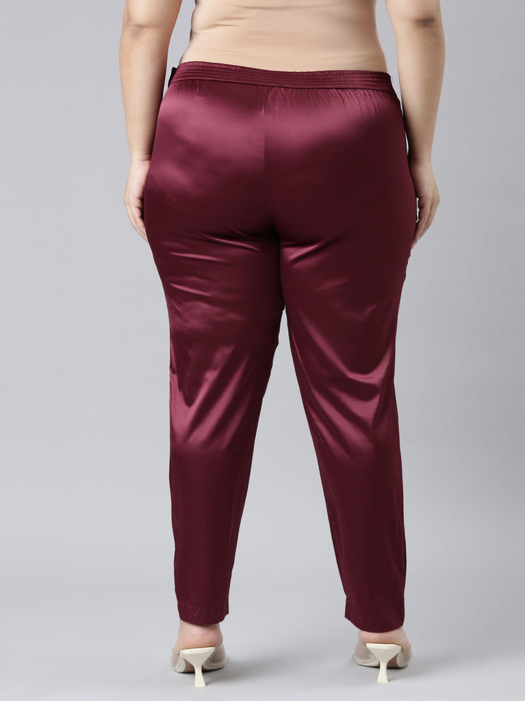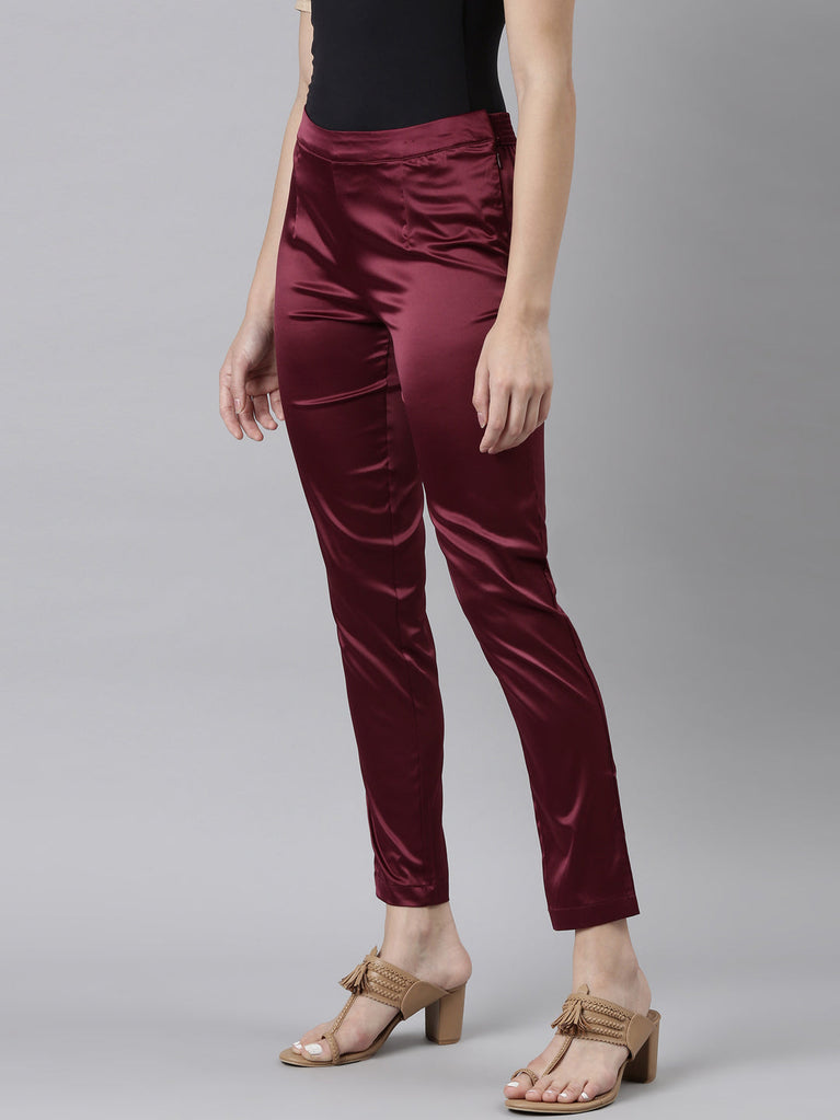 Uber comfortable & light as air,Dark Wine Shiny Pants are perfect when worn. Made from polyester, it has a semi elasticised waistband with side zipper, Hook & Eye closure.