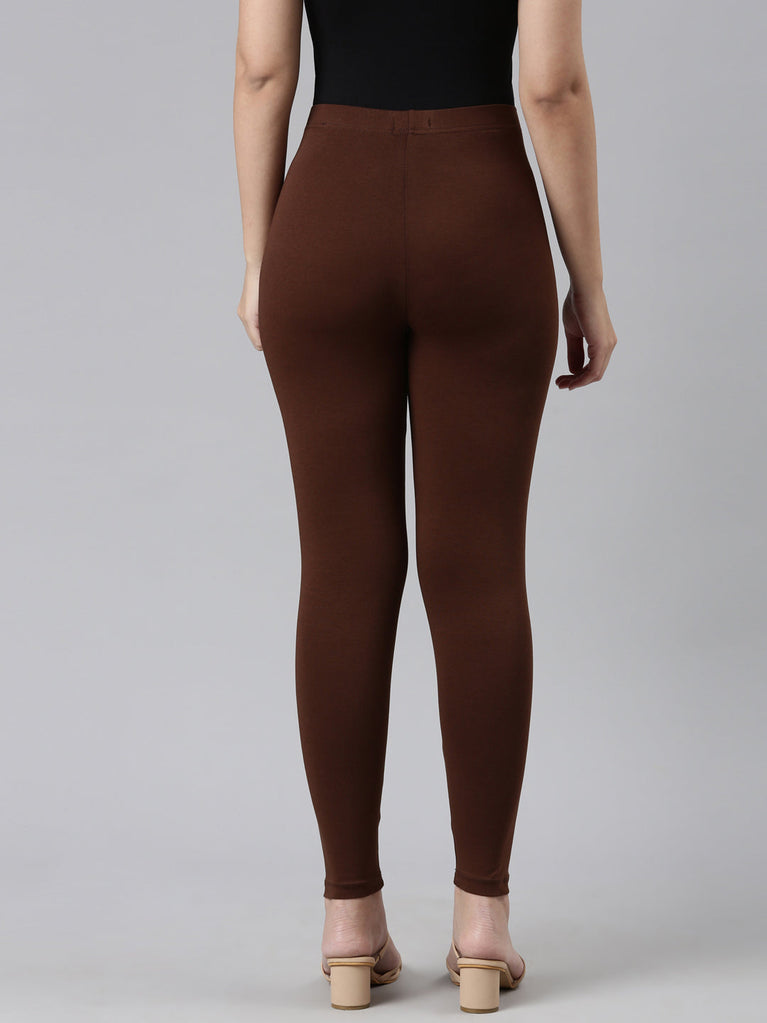 Dark Brown Cotton Stretch Ankle Length Leggings