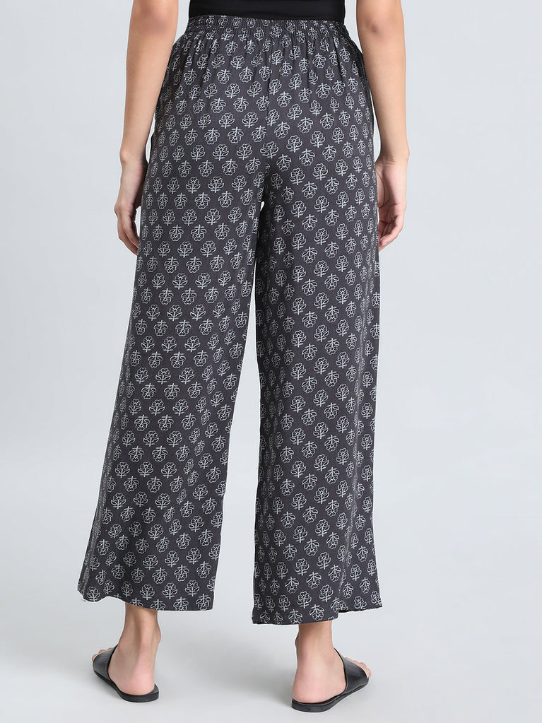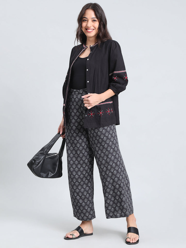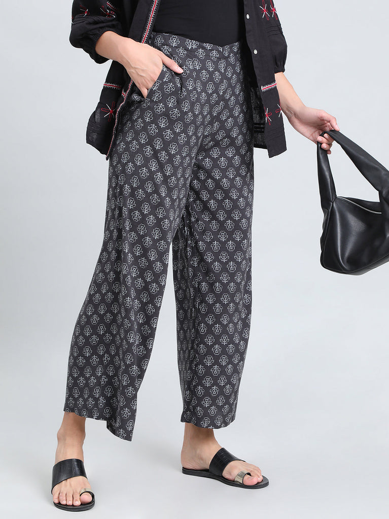 Black Woven Viscose Printed Palazzo