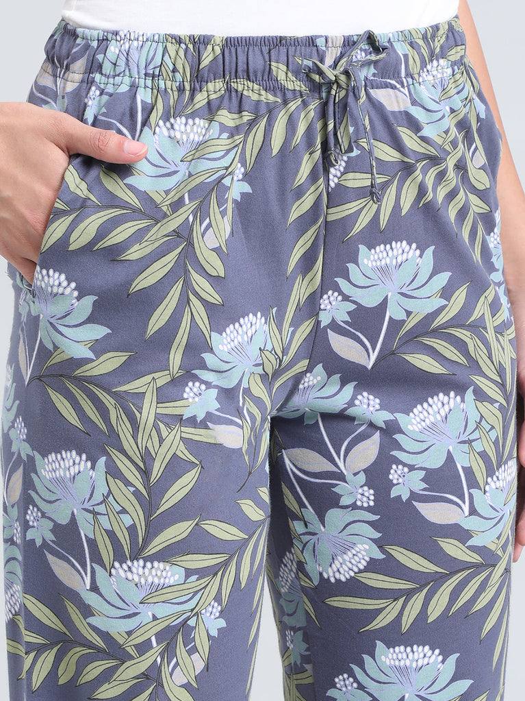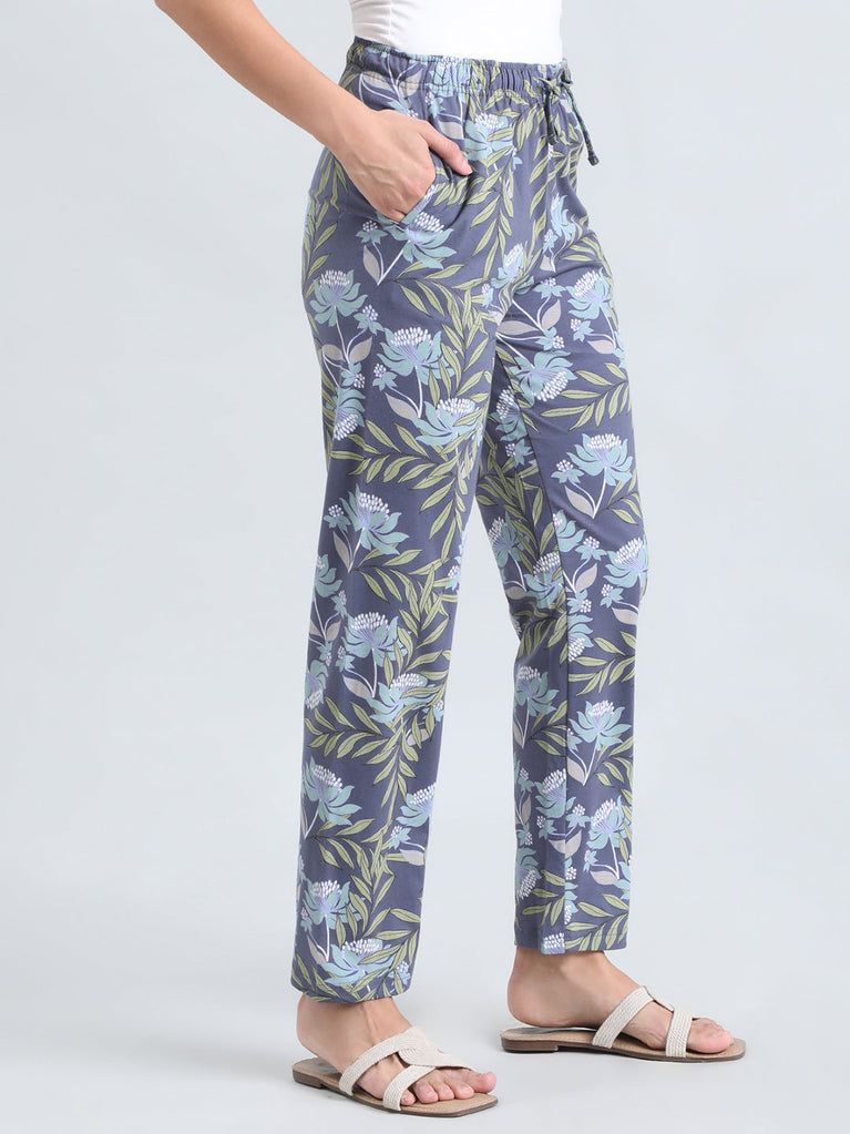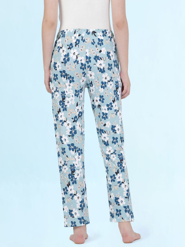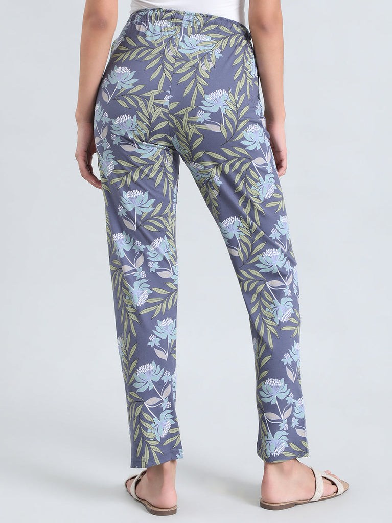 Blue Cotton Knit Printed Lounge Pants