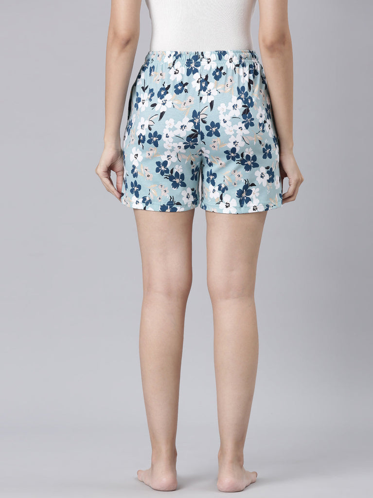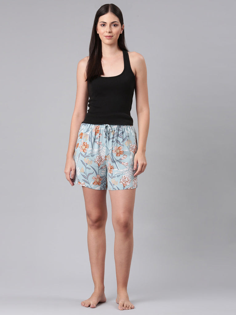 Blue Woven Viscose Printed Lounge Shorts