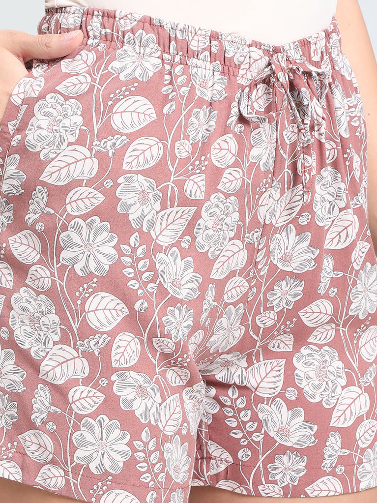 Brown Woven Viscose Printed Lounge Shorts