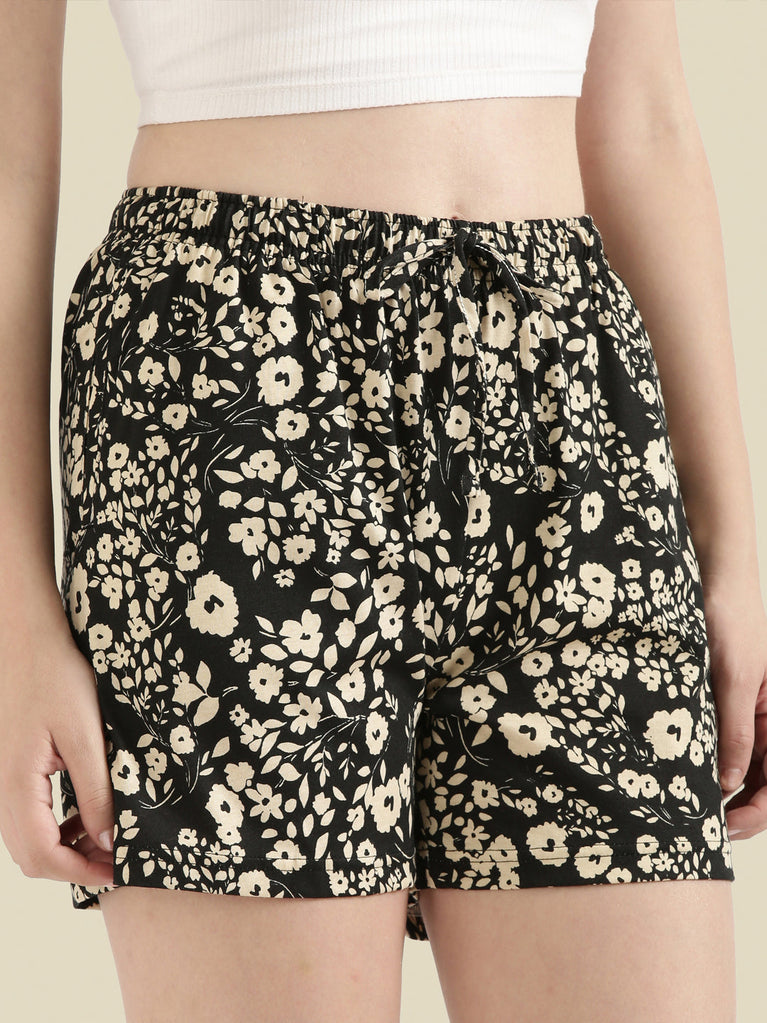 Black Woven Viscose Printed Lounge Shorts