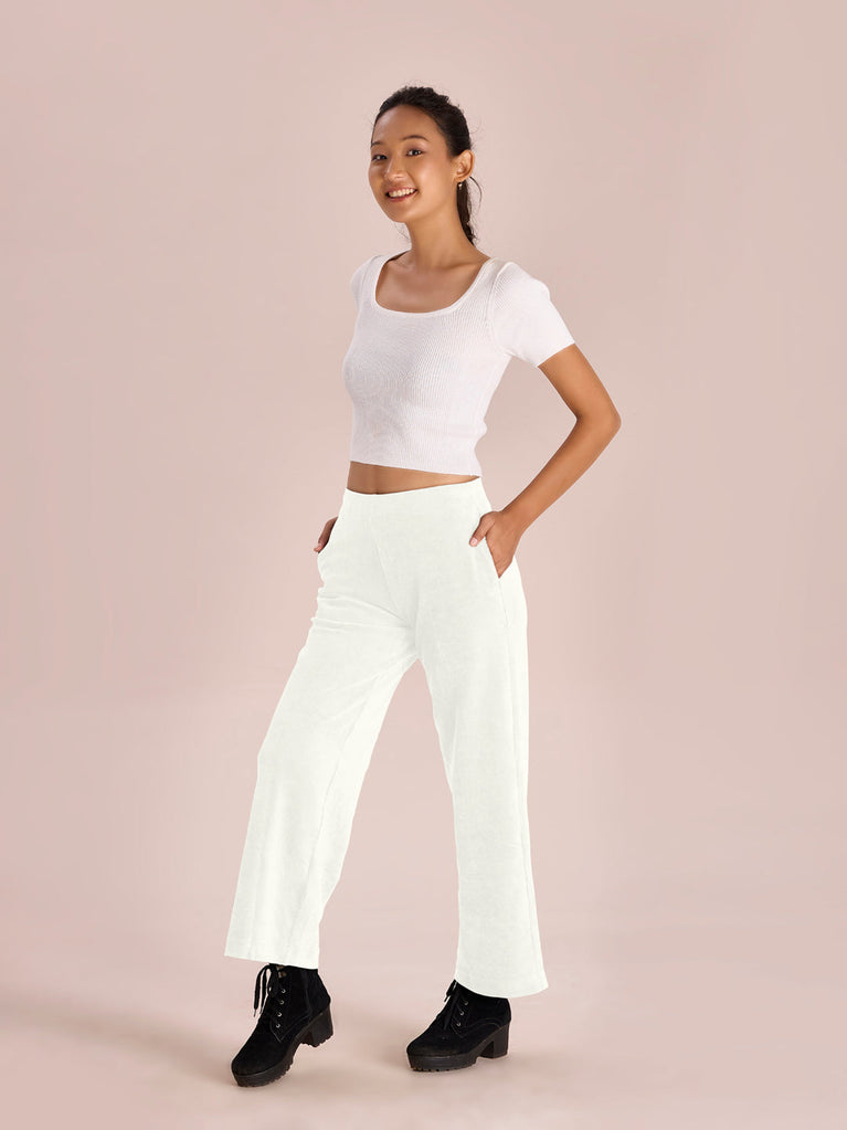 Cream Corduroy Wide Pants