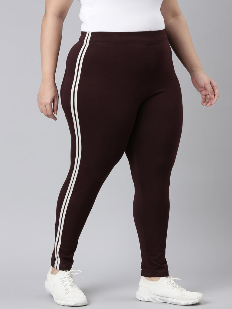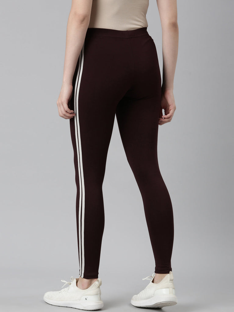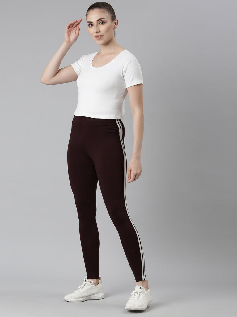 Bringing your A-game to any fitness regime with our comfortable Brown Solid Side Stripe Active Leggings. Made from cotton stretch fabric, it has a elasticised waistband & a contrast side striped panel for a sporty look.