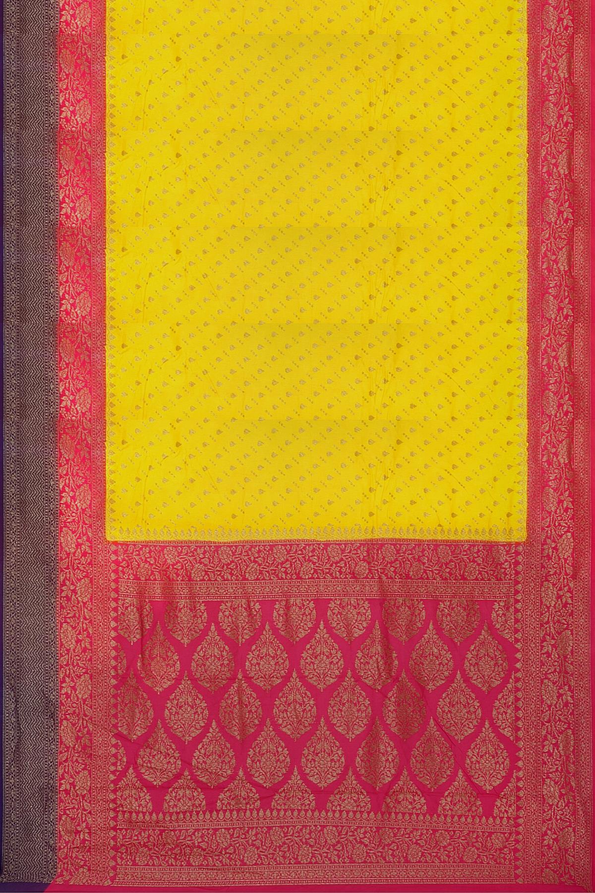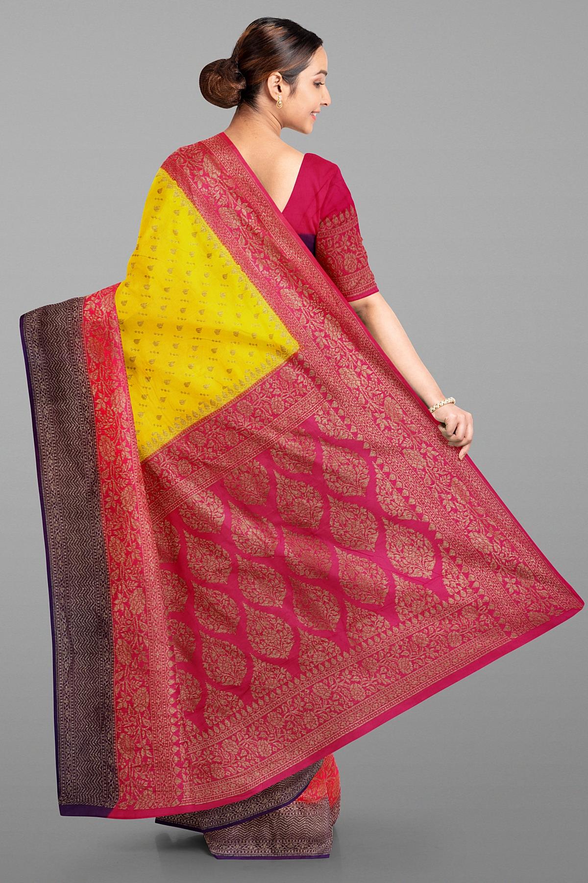 YELLOW AND PINK BUTTIS SILK SAREE WITH FANCY