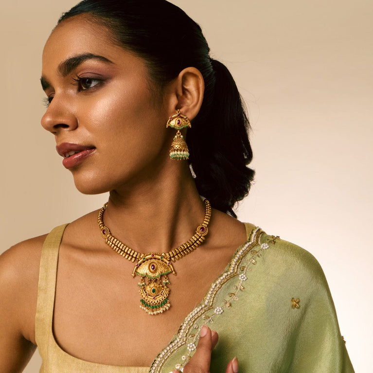 Ruby-Green / Oxidised Gold