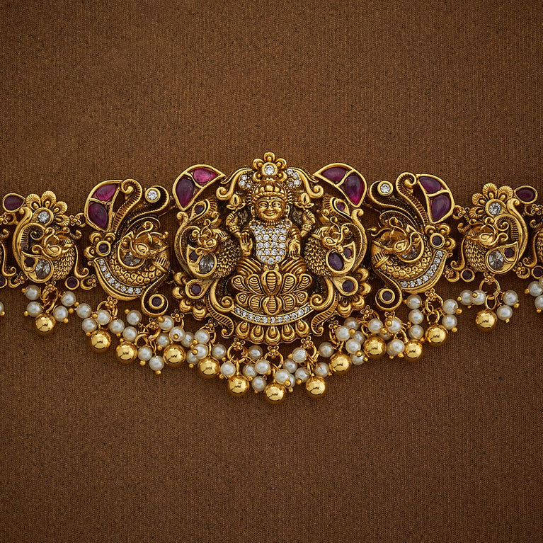 Kushal's Fashion Jewellery Flower Motif Antique BeltLooking for that perfect accessory to enhance your outfit? Look no further! Our antique belt is the perfect piece for you! The belt boasts a copper alloy base metal, expertly embellished with a radiant ruby-coloured synthetic stone. Whether traditional attire or a modern ensemble, this beautifully designed belt is versatile and never fails to make a statement.