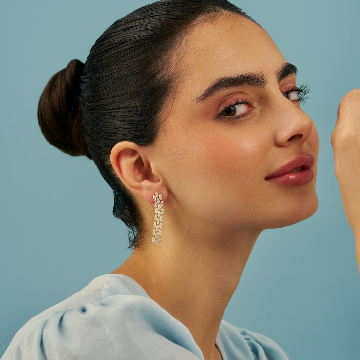 Radiate sophistication and showcase effortless style wearing these 92.5 silver earrings. Crafted from durable materials, they’re a perfect addition to your festive collection. The hanging earrings feature a secure push-back closure. A perfect blend of modernity and elegance, they are available in multiple polish options: gold, rhodium and rose gold.
