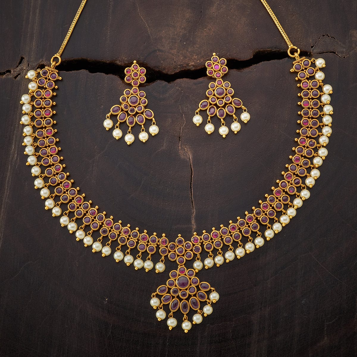 Get pleased with this absolutely beautiful antique necklace paired with a set of earrings. We craft these neckpieces with care and authentic material like copper alloy. The intricate designs enhance its overall appearance. Look compelling in your traditional outfit by pairing it with our antique necklace and earrings on any occasion.
