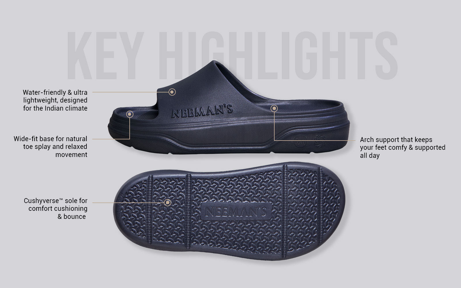 Presenting the Cushers - Crafted for your feet's love for cushioning! With our uniquely engineered CushyVerse™ technology, the Cushers Slides bring bounce, support and comfort extending from mid-foot to heels to your sole.