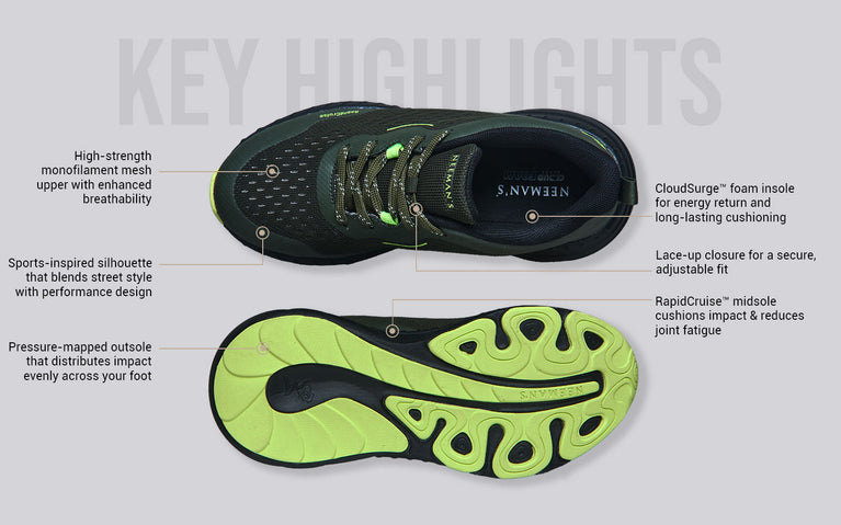 Everyday walks just got an upgrade. Begin Walk Drift blends lightweight mesh, RapidCruise™ cushioning, and a bold, grippy sole to give your steps a boost of ease and energy. Weave through crowds, pace through meetings, or end your long days with a walk—this light & steady solemate loves to keep moving!
