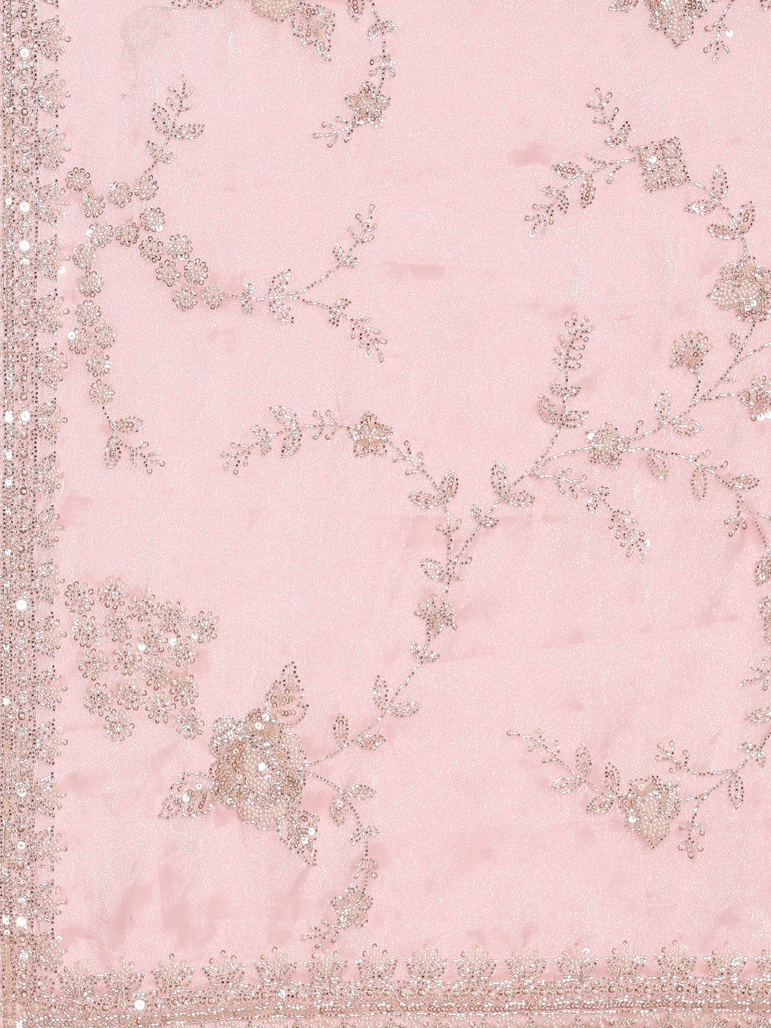 Baby pink satin saree with zardozi hand work