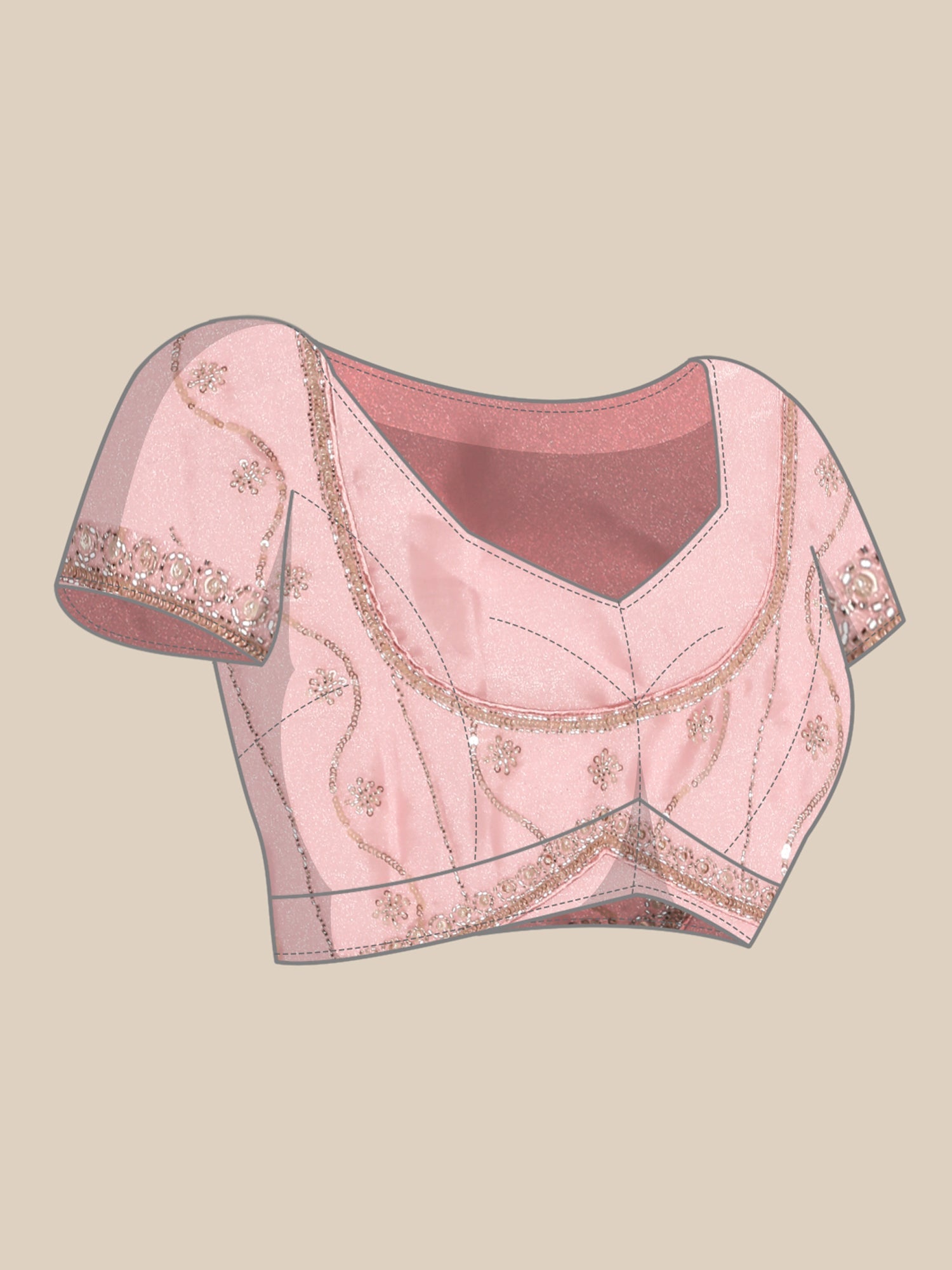 The blouse piece included is unstitched.
