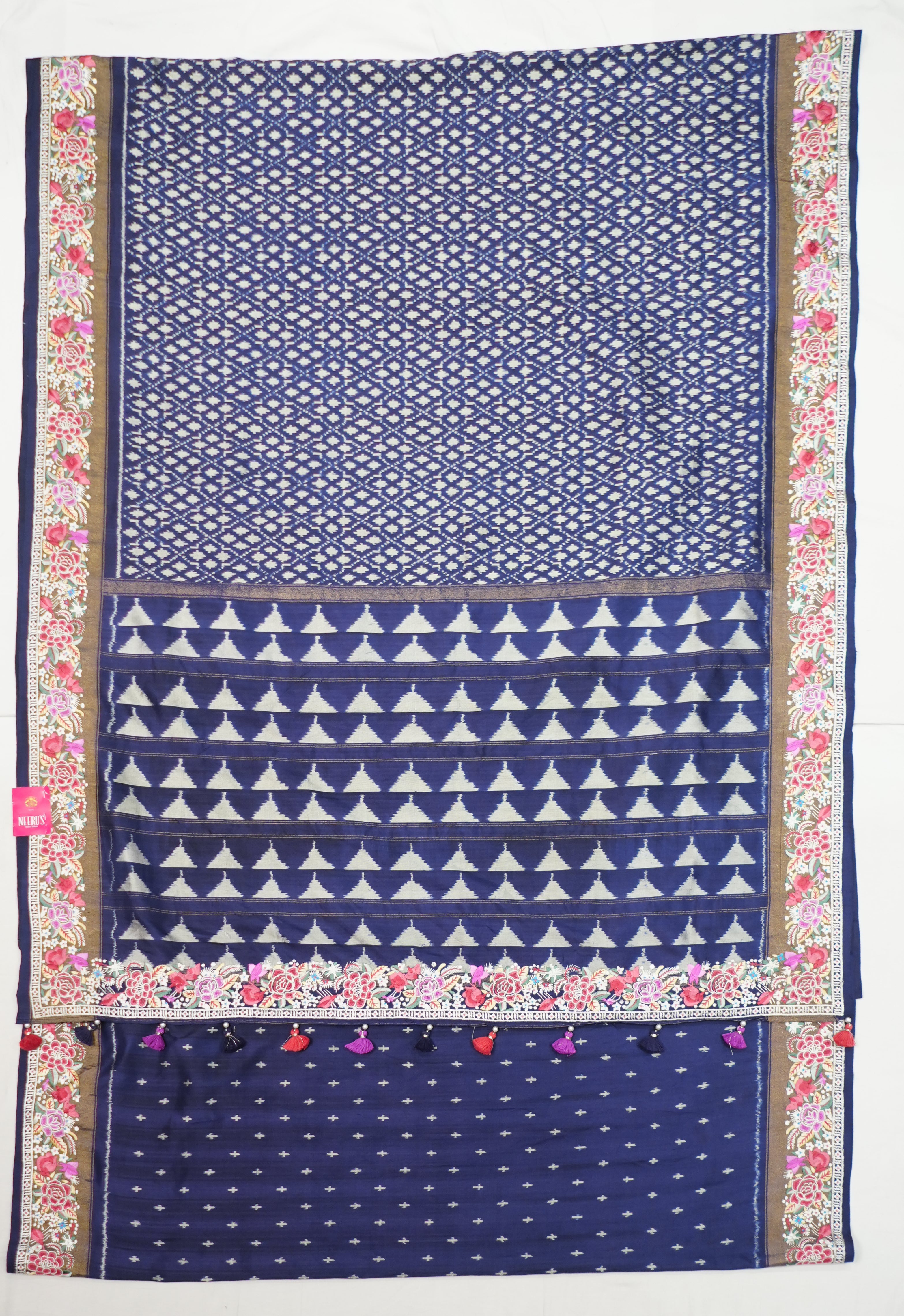 Navy Blue Handloom Patola Saree With Designer Petite Point Embroidery Border